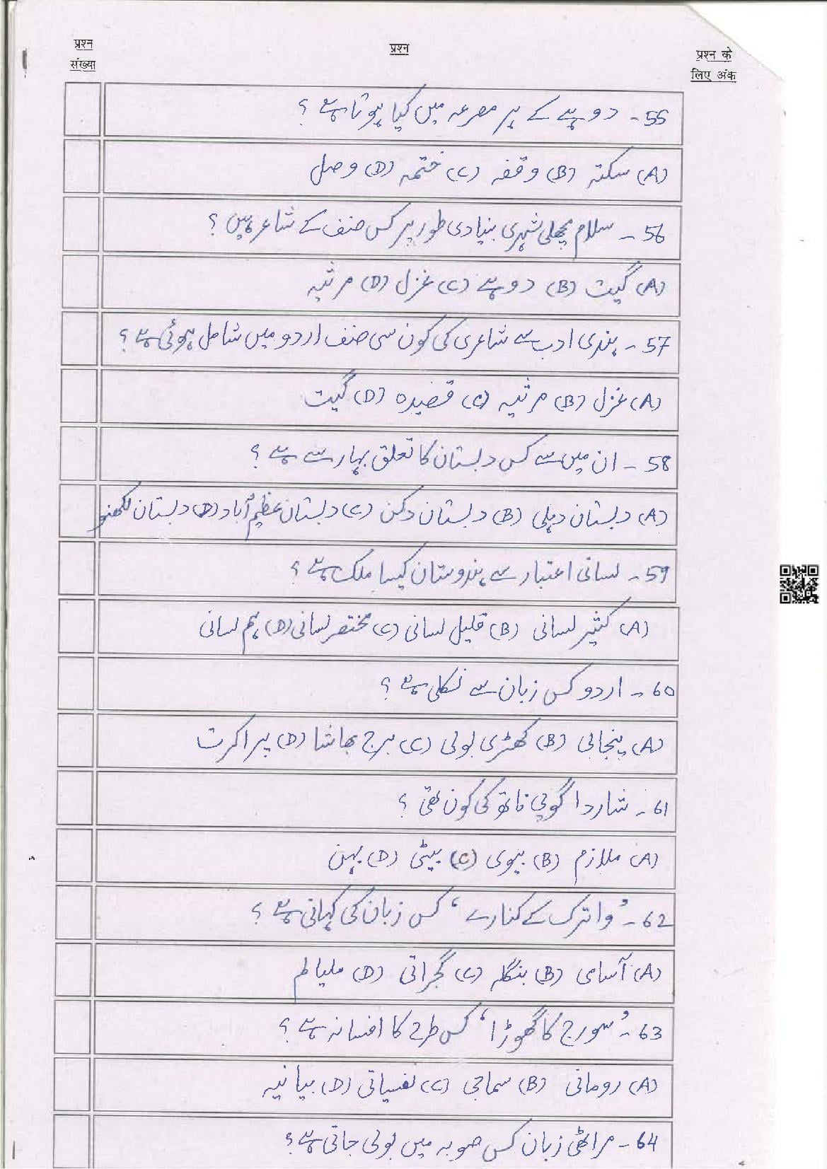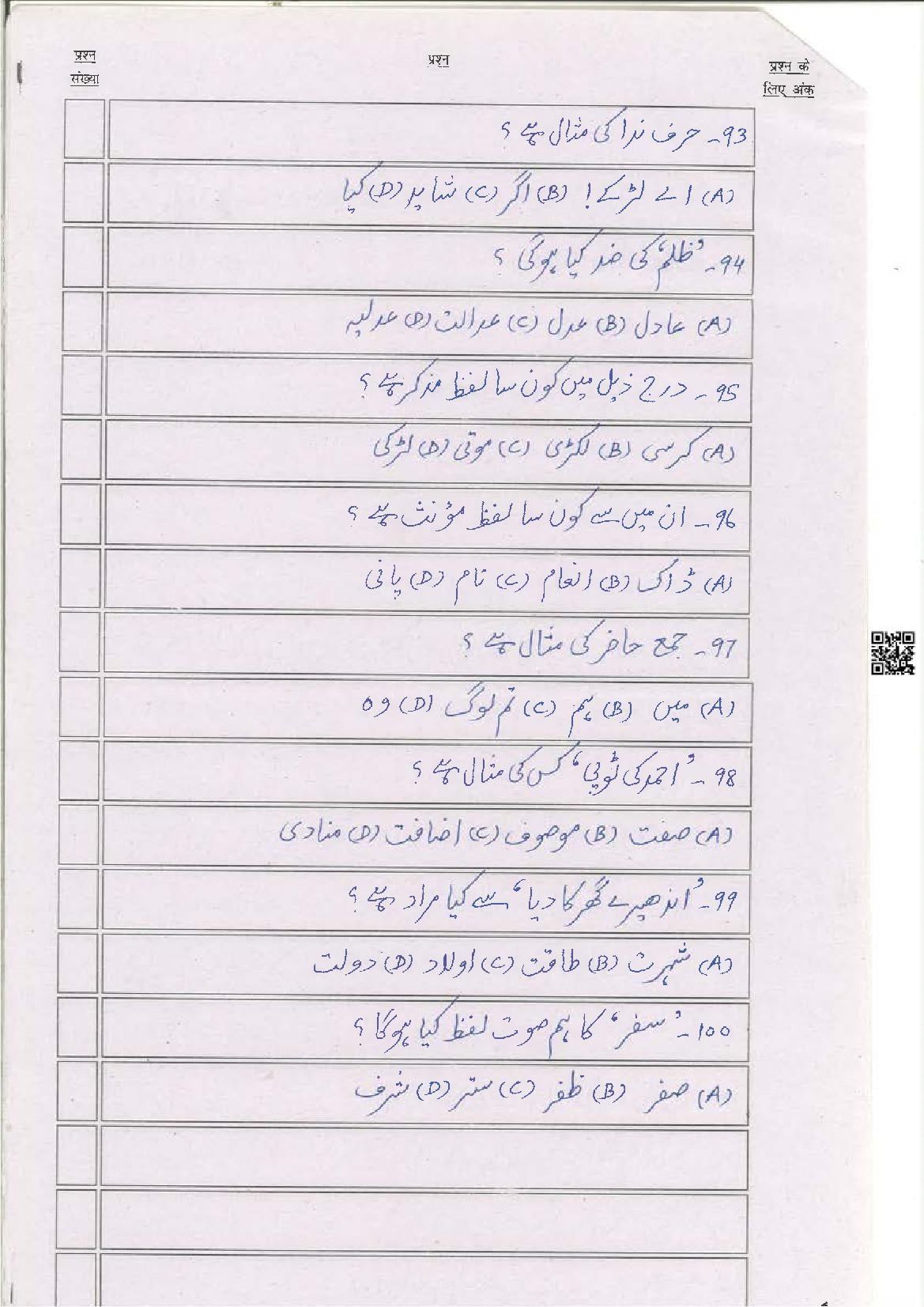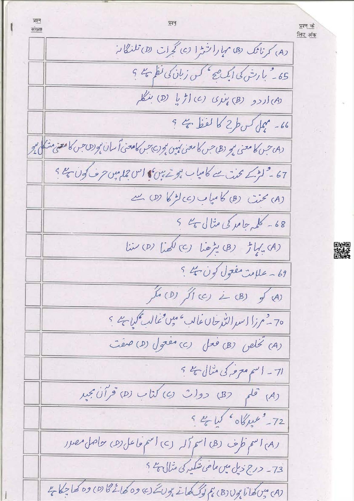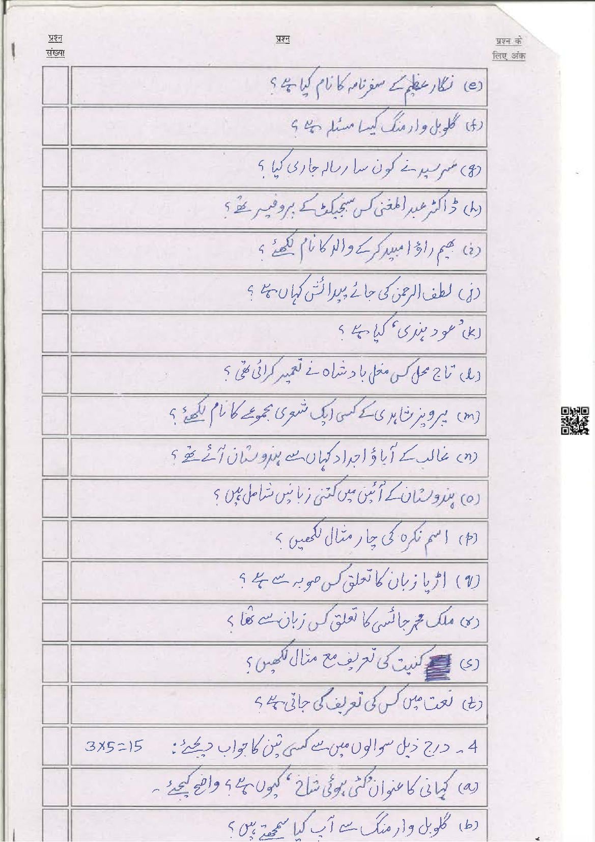 The latest Urdu previous year question paper is as follows.