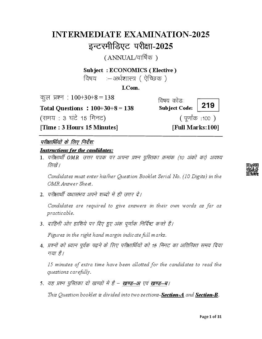 Bihar Board Class 12 Economics Question Paper 2025 PDF Download Link – Click Here to Download Question Paper PDF