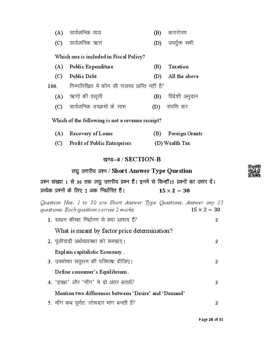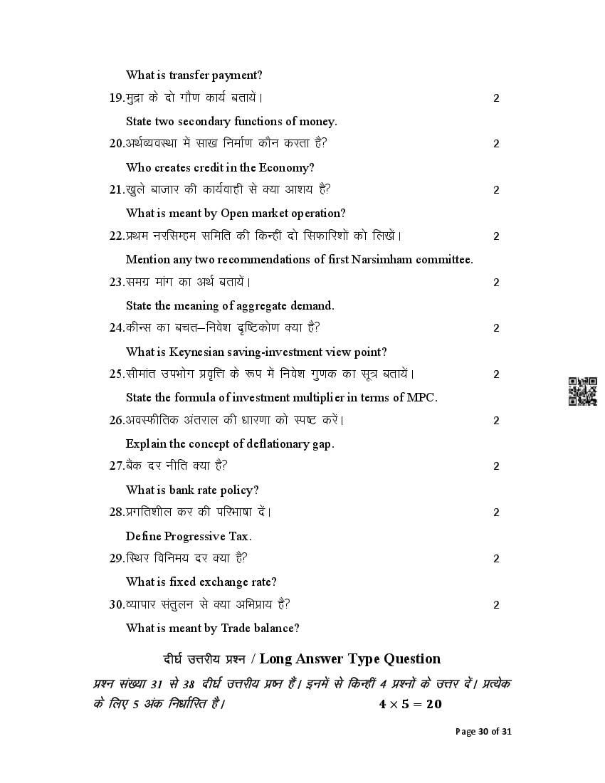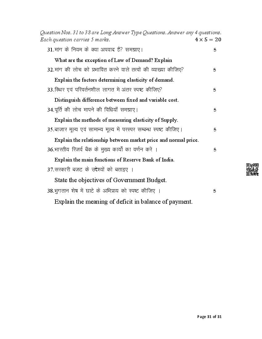 The Bihar Board Question Paper for Class 12 (Inter) Economics is as follows.