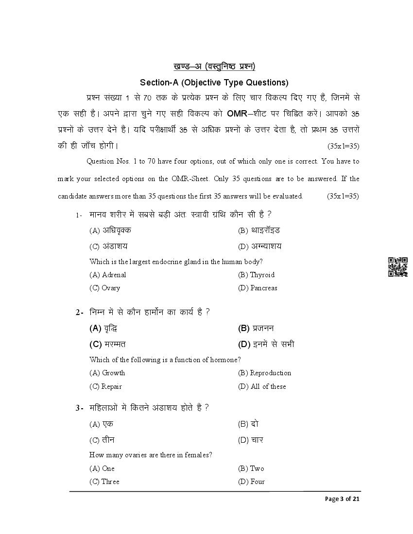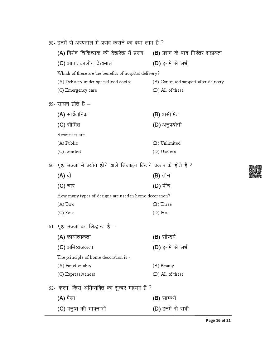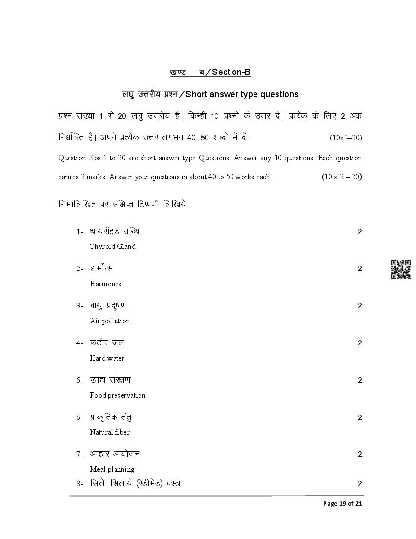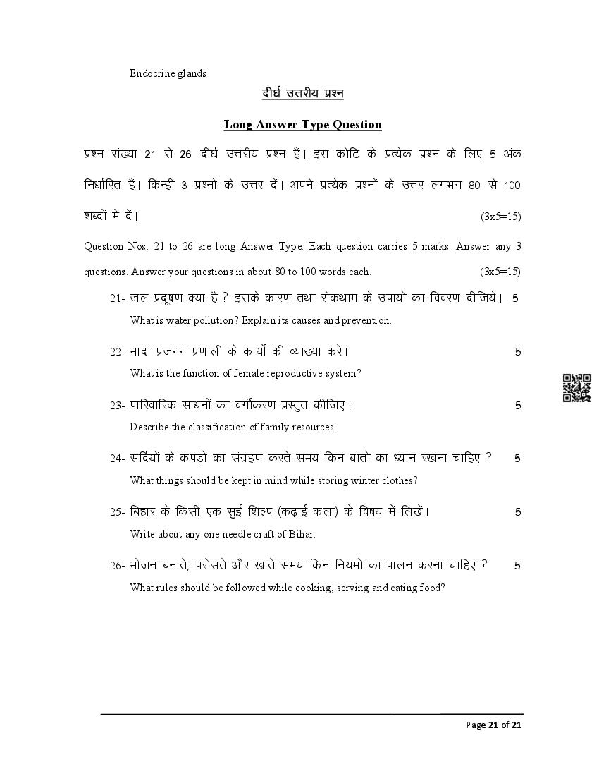 | Study Material Here | Bihar Board Question Paper of Class 12 Home Science |
