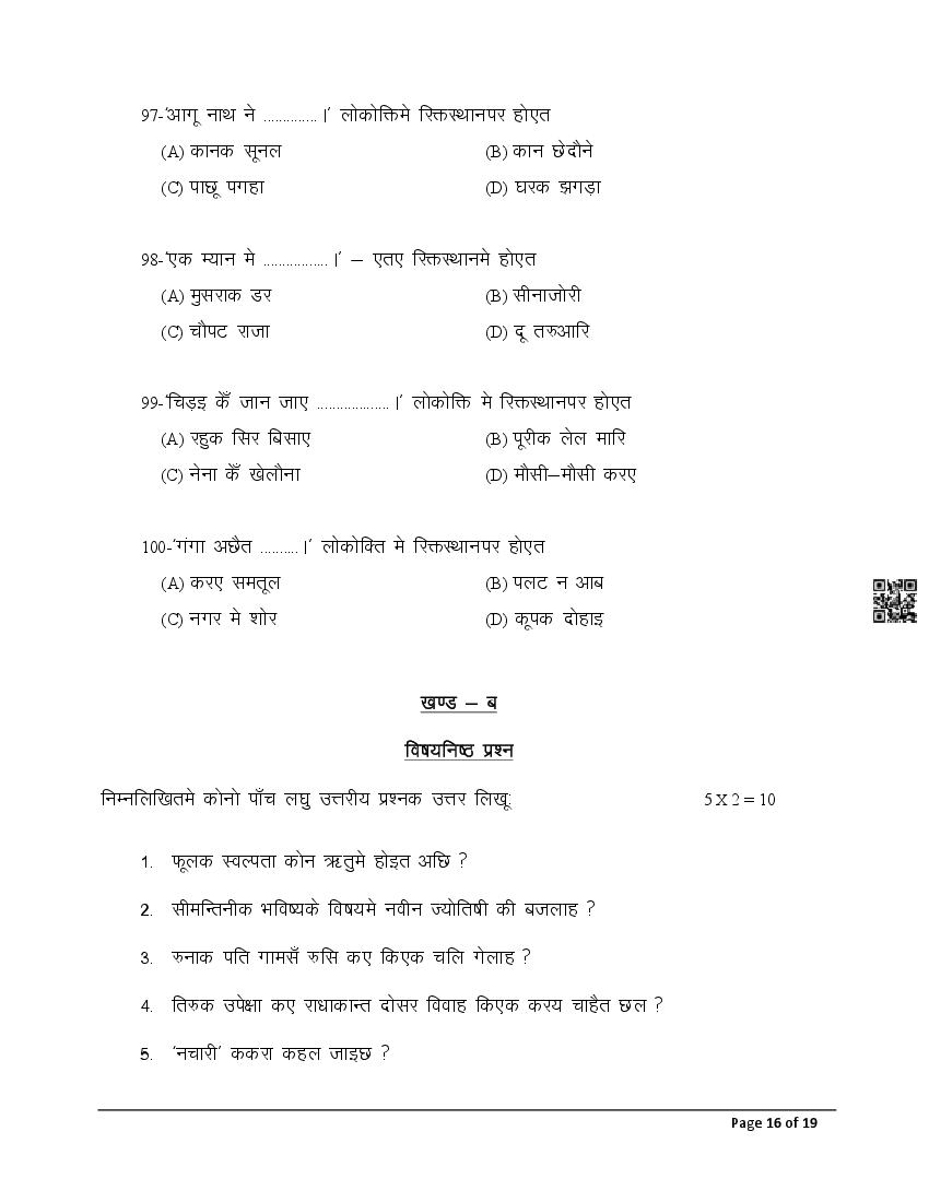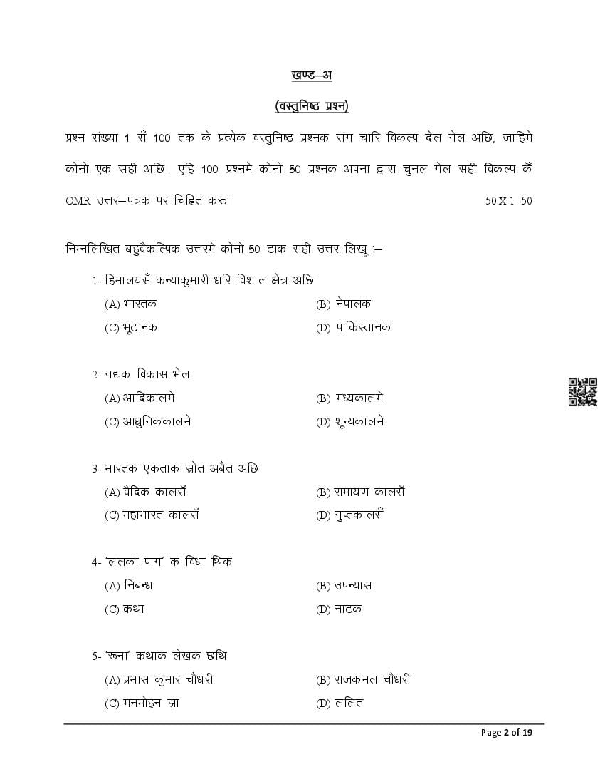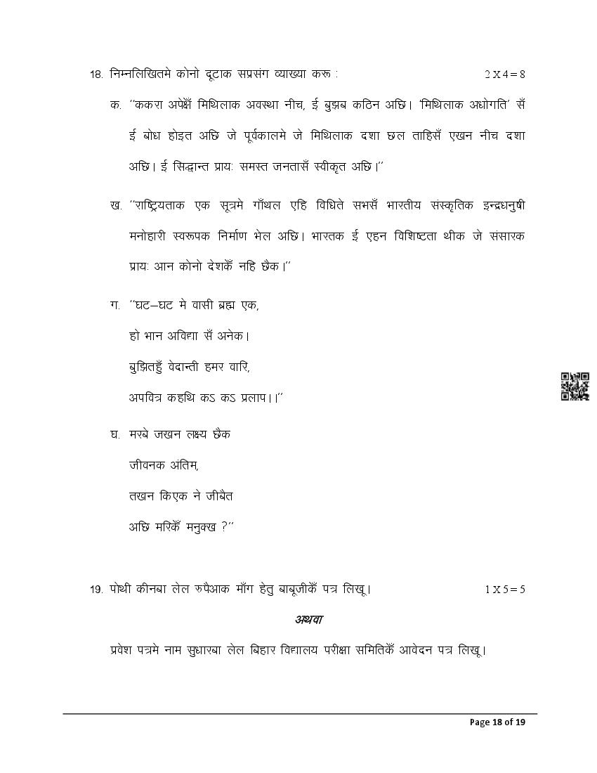 The Bihar Board Question Paper for Class 12 (Inter) Maithli is as follows.