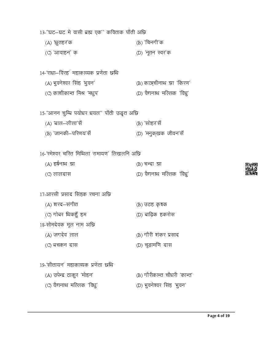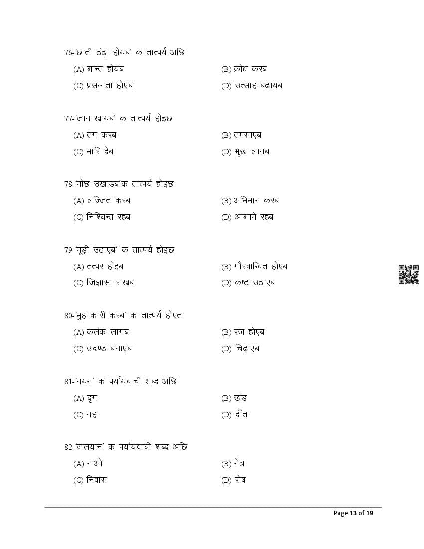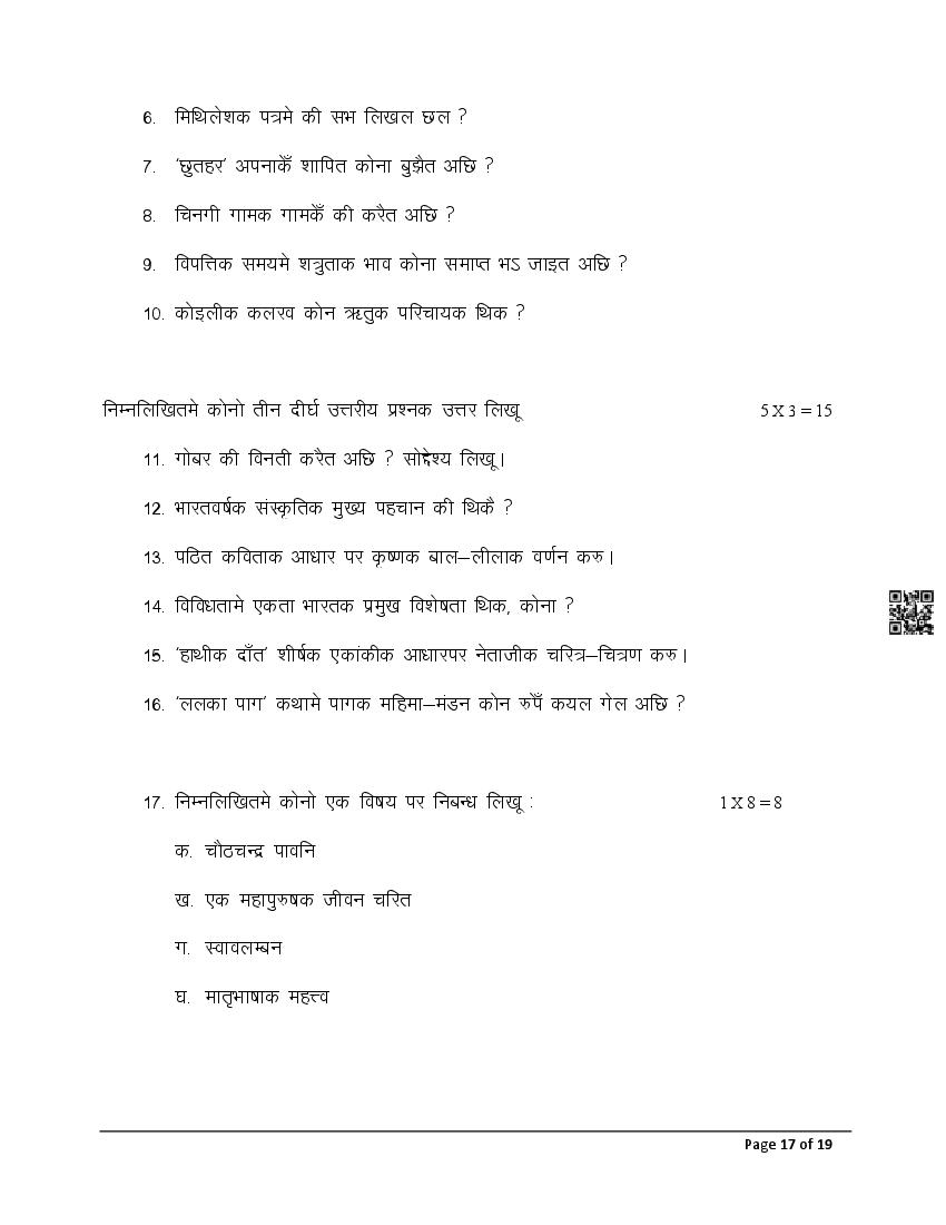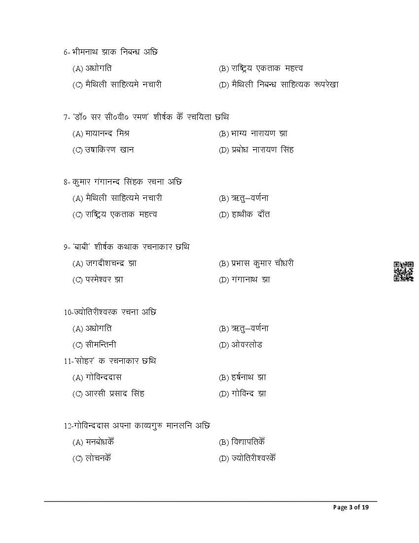 The Bihar Board Question Paper for Class 12 (Inter) Maithli is as follows.