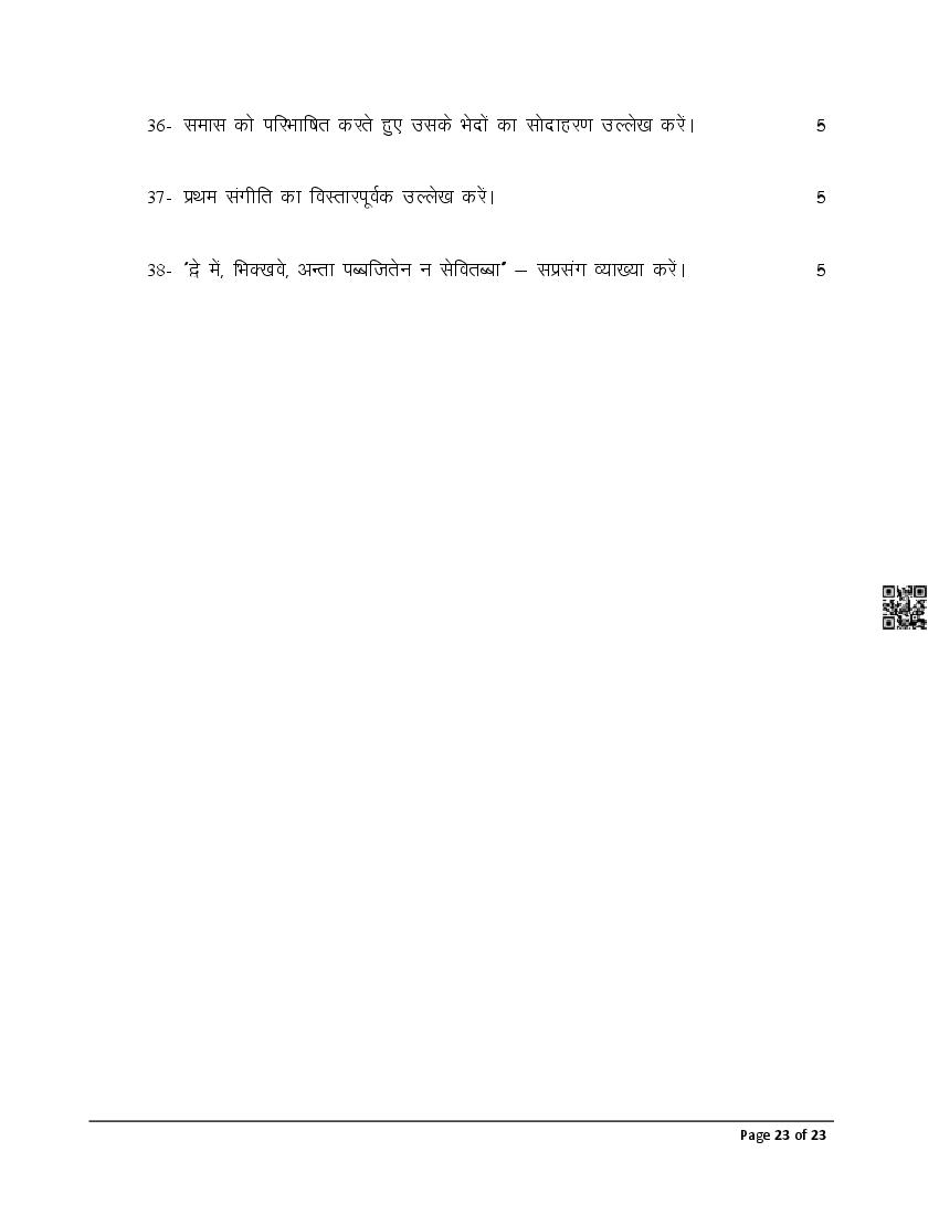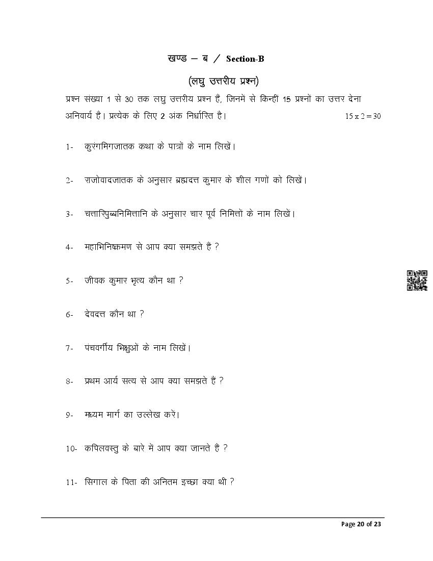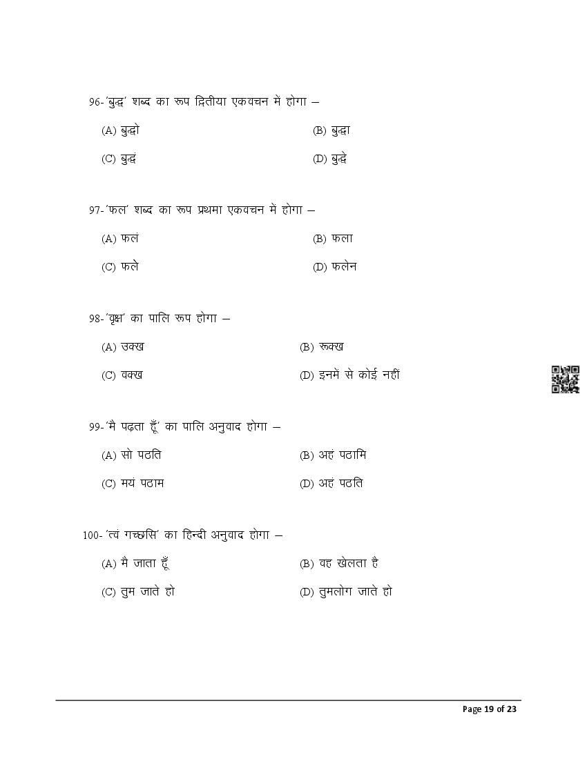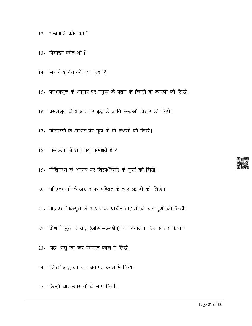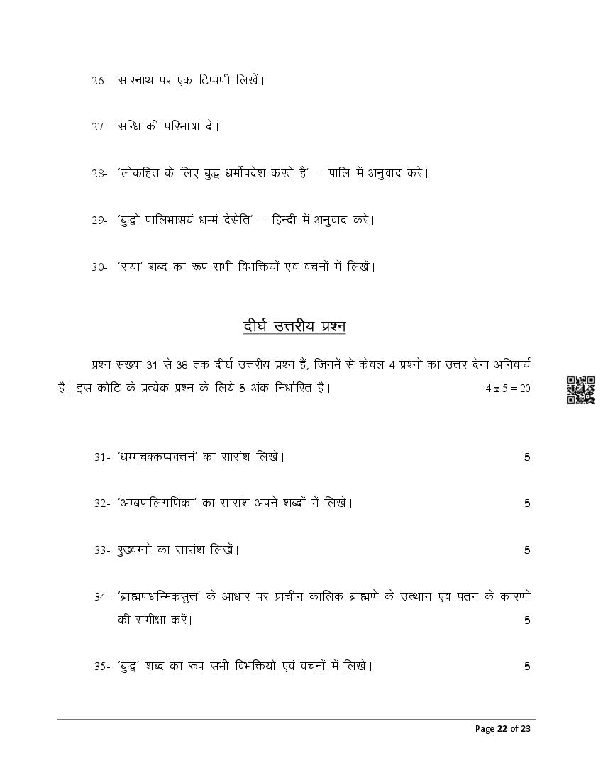 The latest Pali previous year question paper is as follows.
