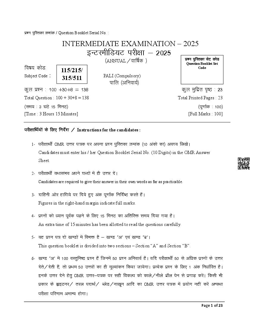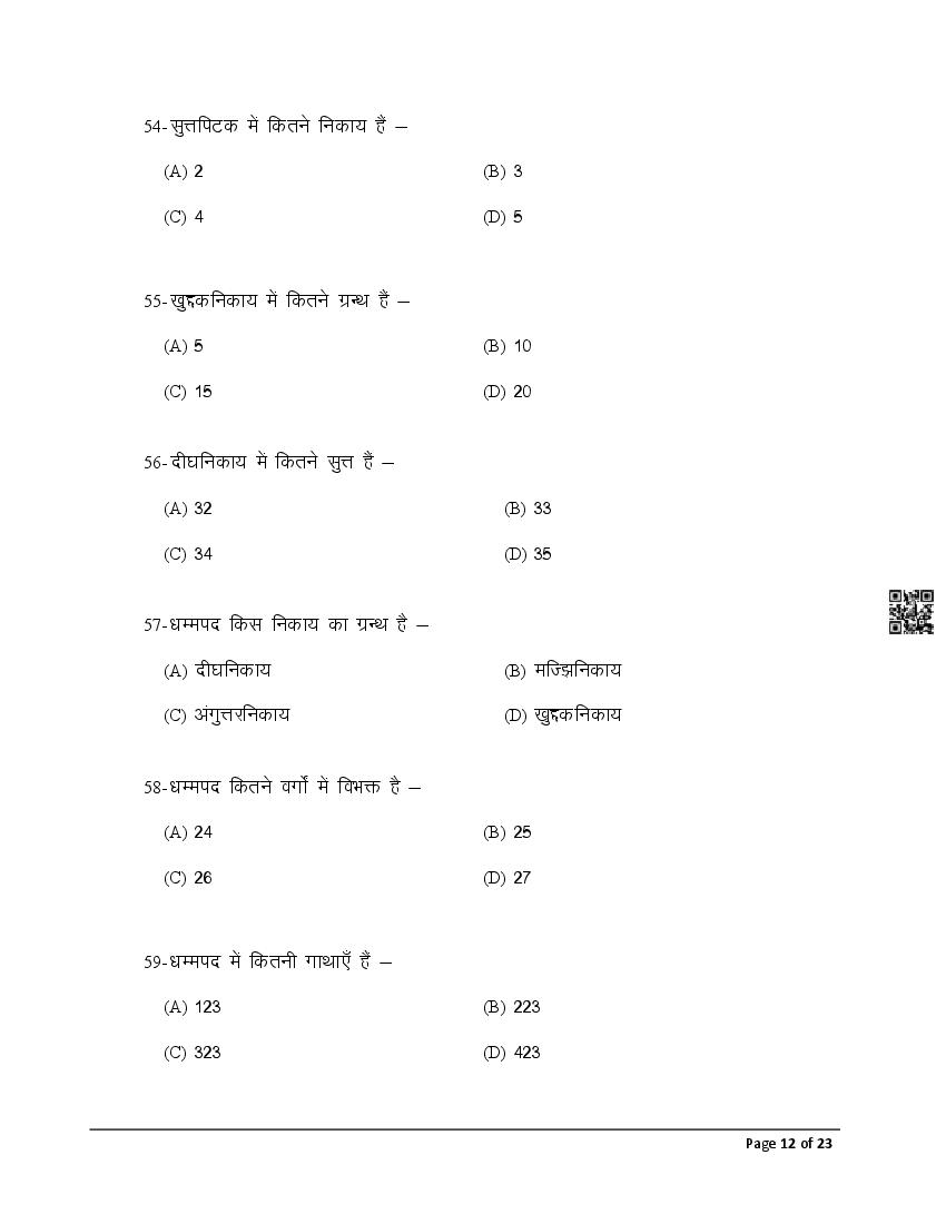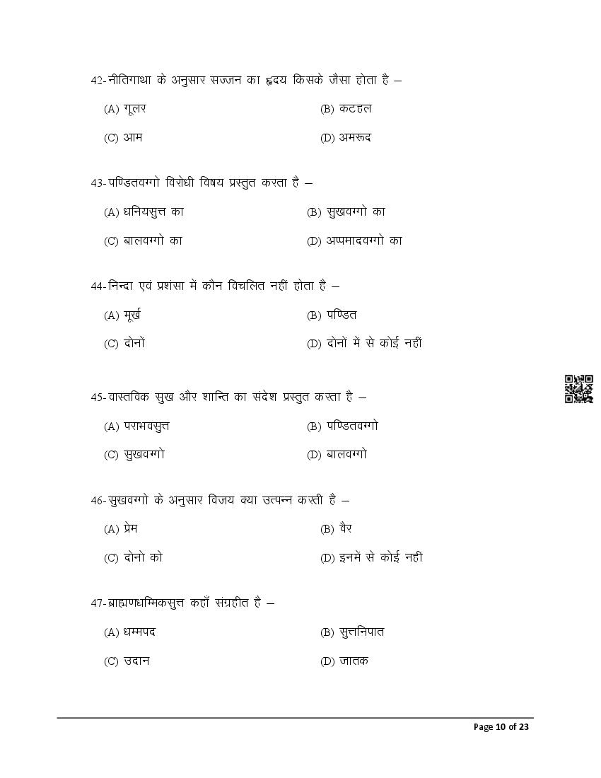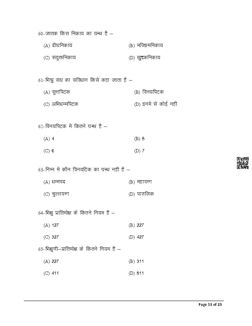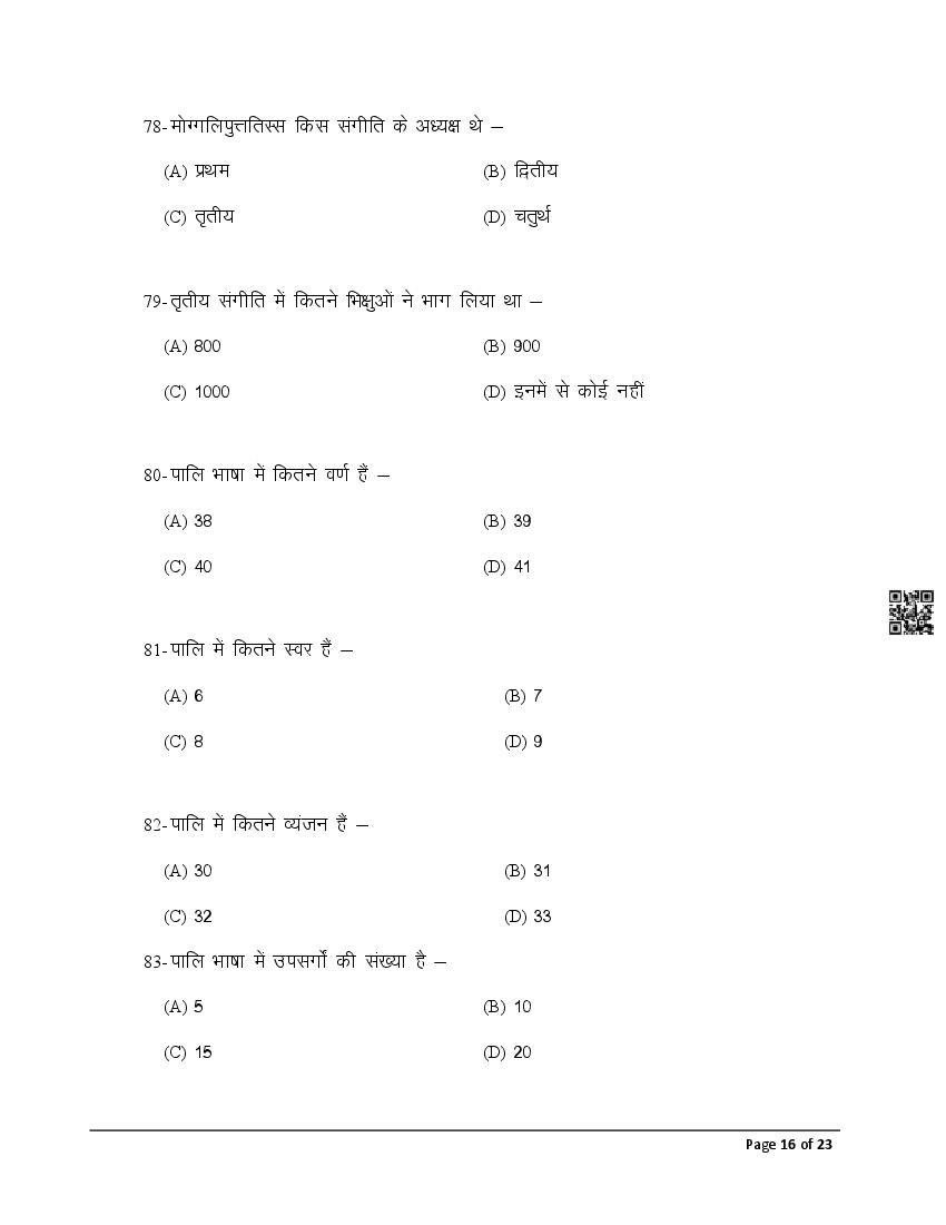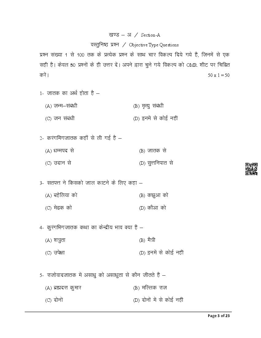 The latest Pali previous year question paper is as follows.