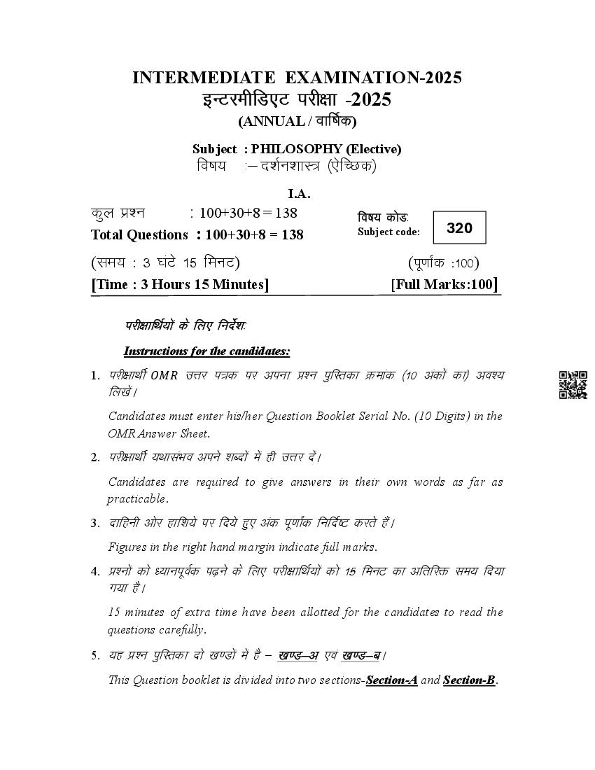 Bihar Board 12th Question Paper 2025 Philosophy View Download