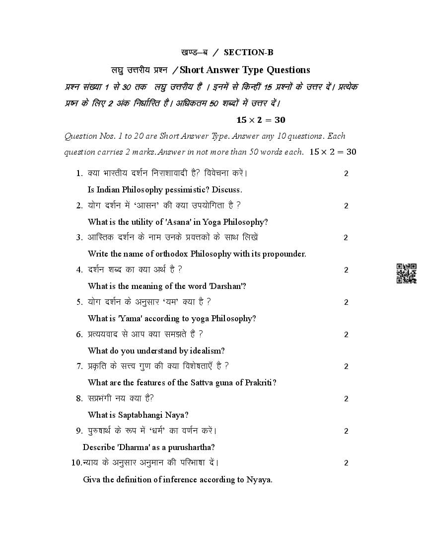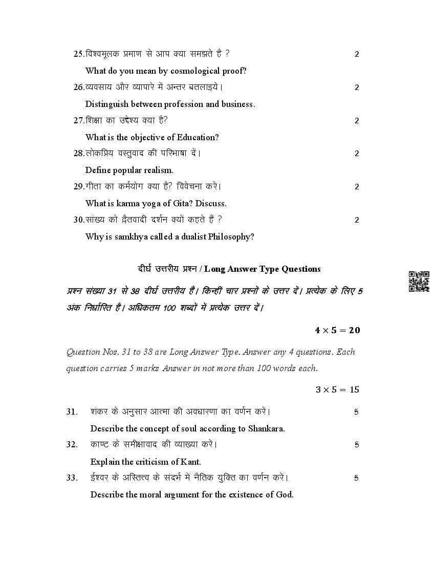 The Bihar Board Question Paper for Class 12 (Inter) Philosophy is as follows.