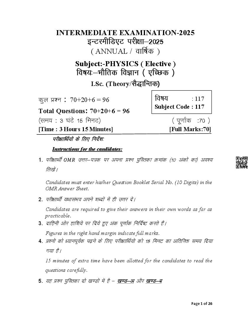 Bihar Board 12th Question Paper 2025 Physics View Download