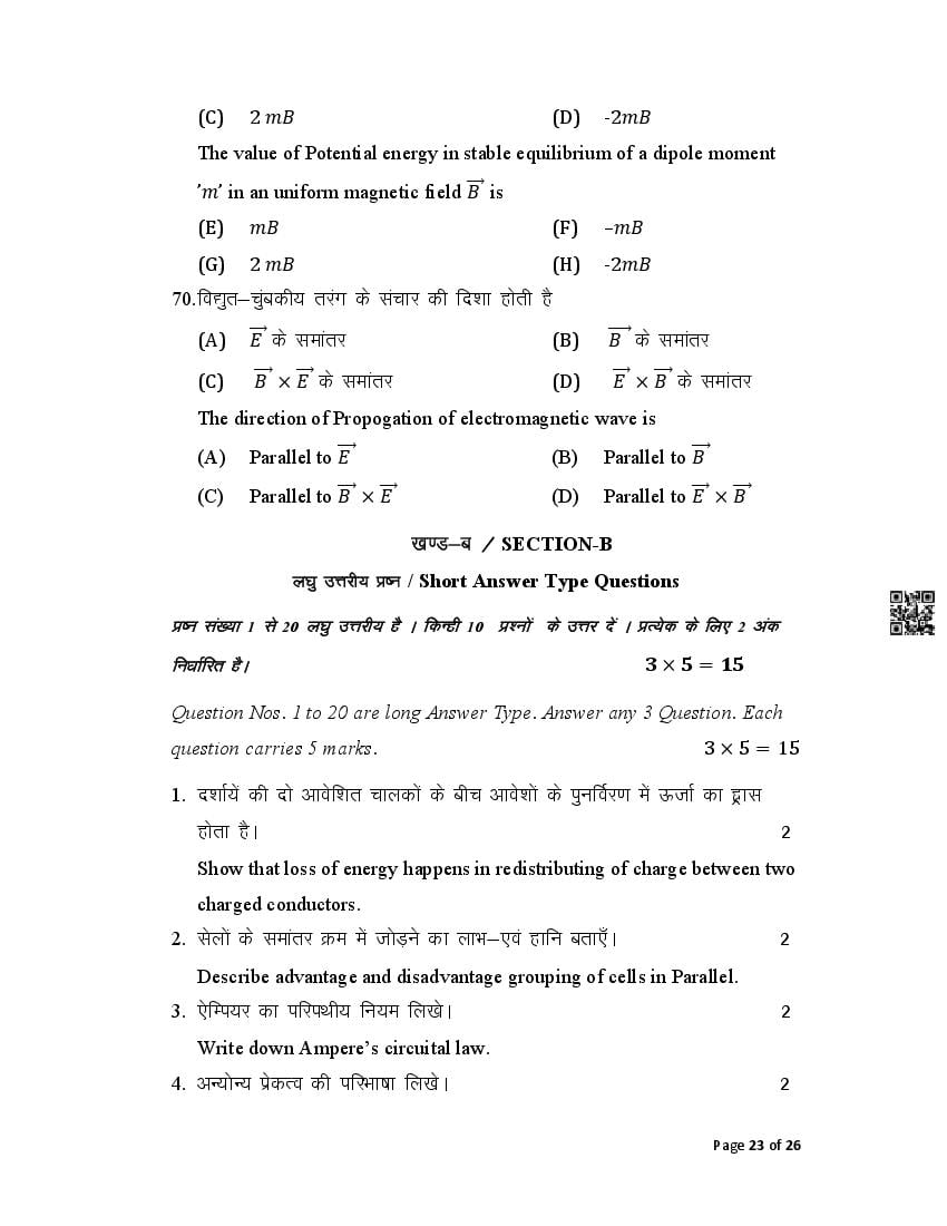 | Study Material Here | Bihar Board Question Paper of Class 12 Physics |
