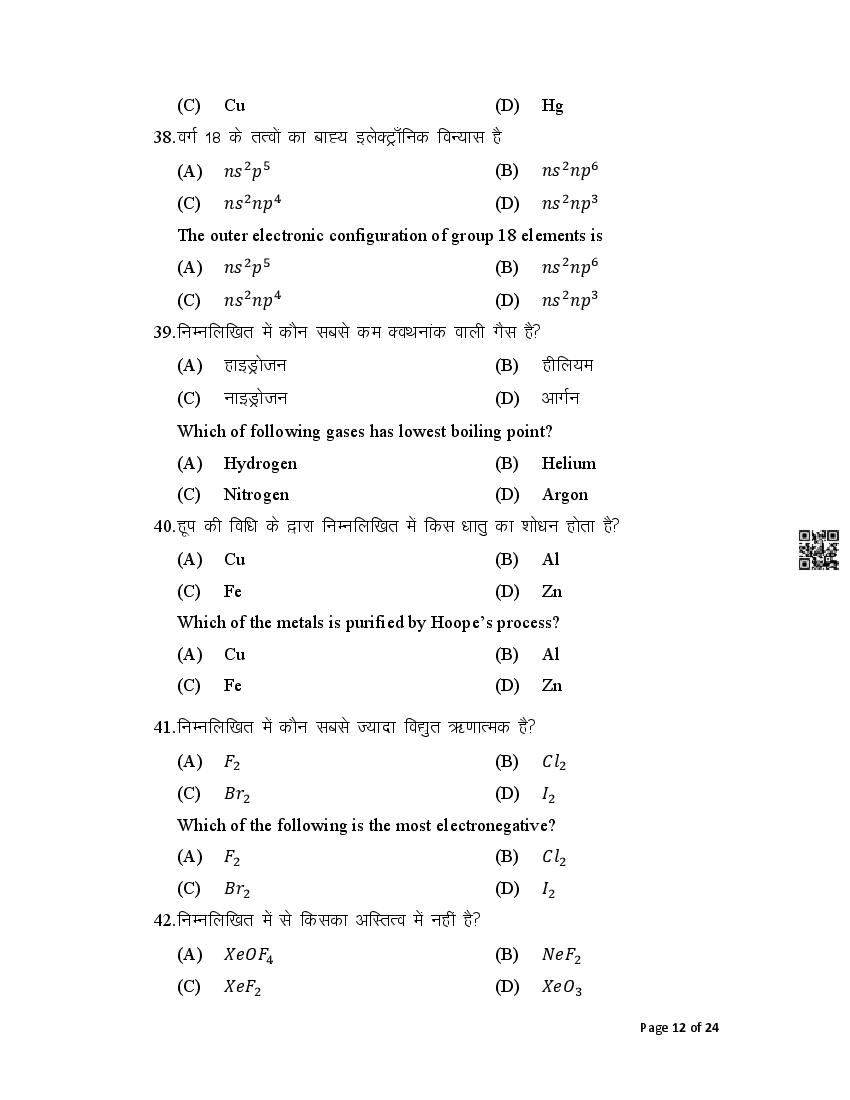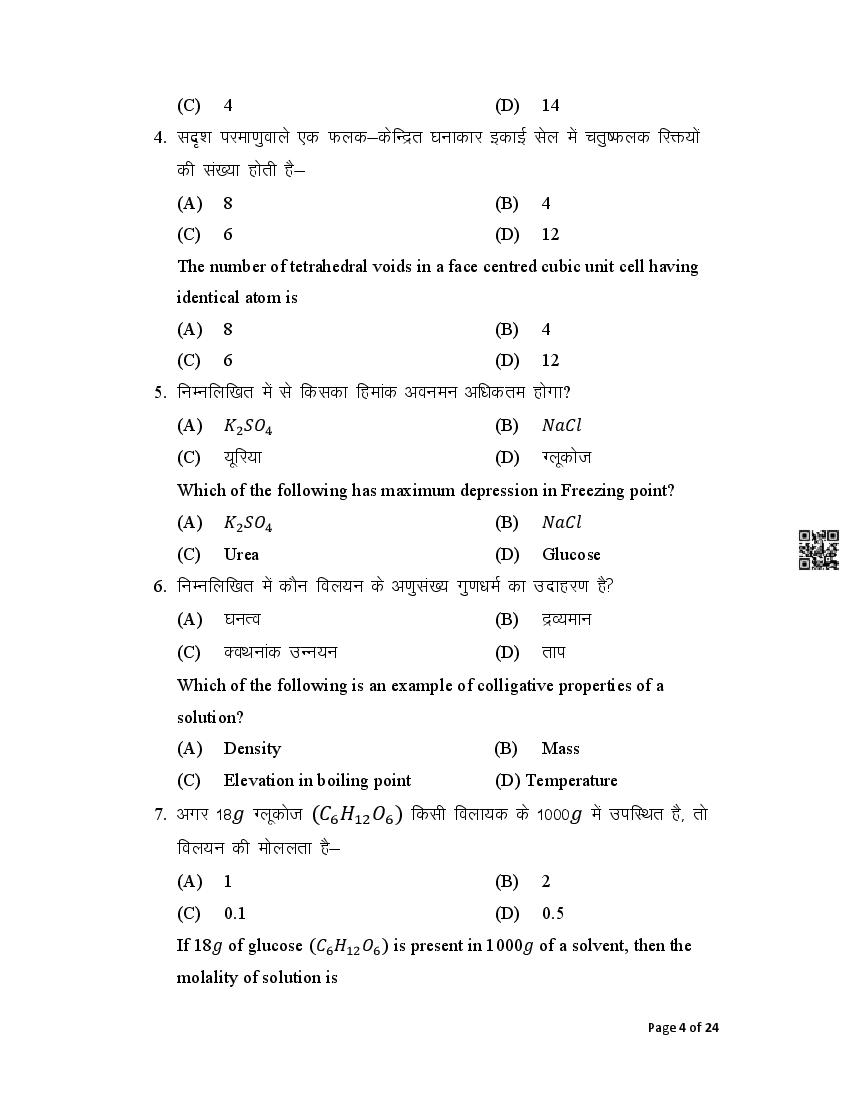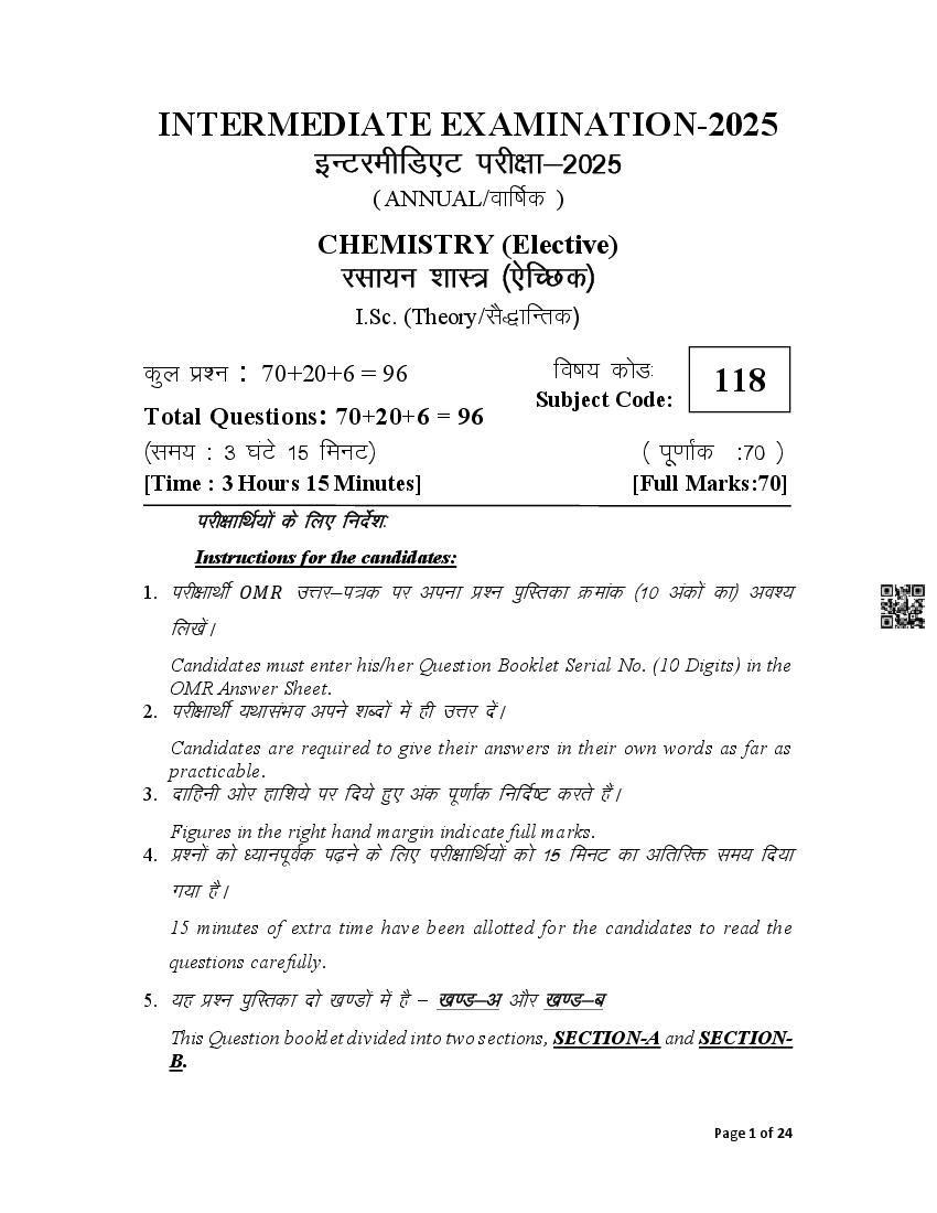 Bihar Board 12th Question Paper 2025 Chemistry View Download