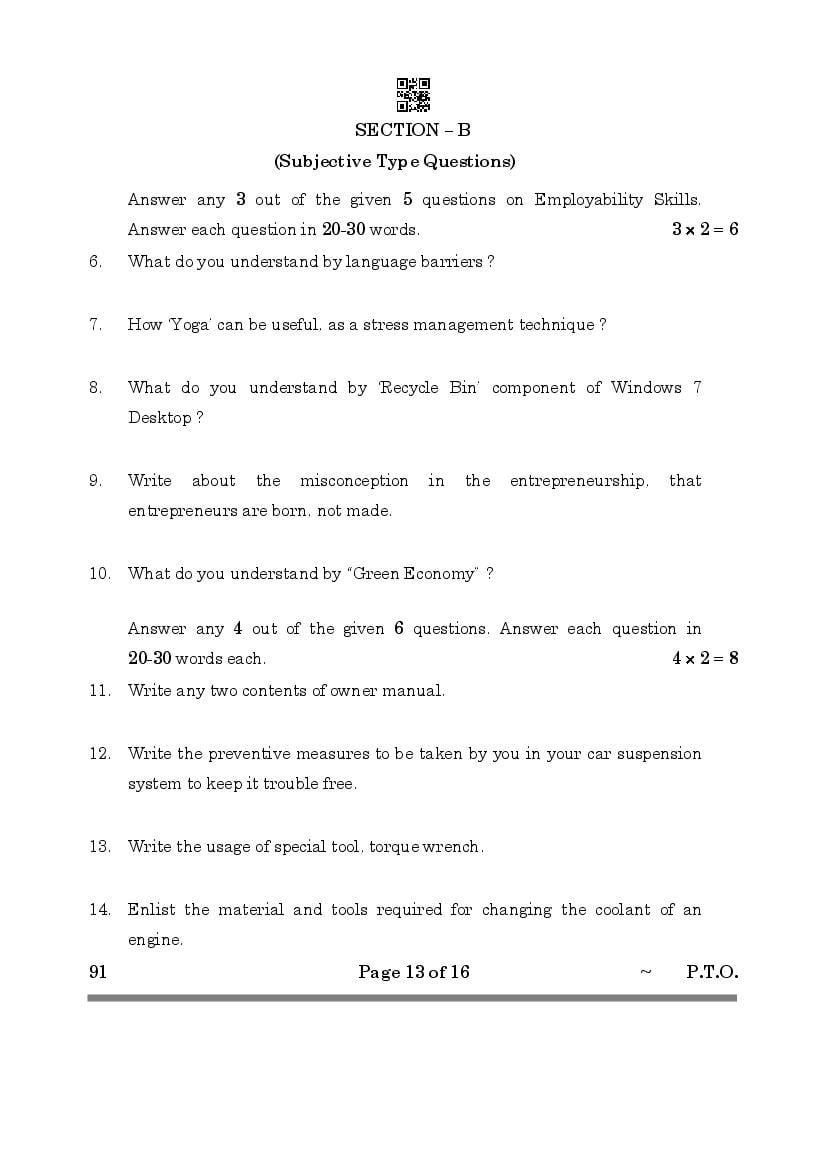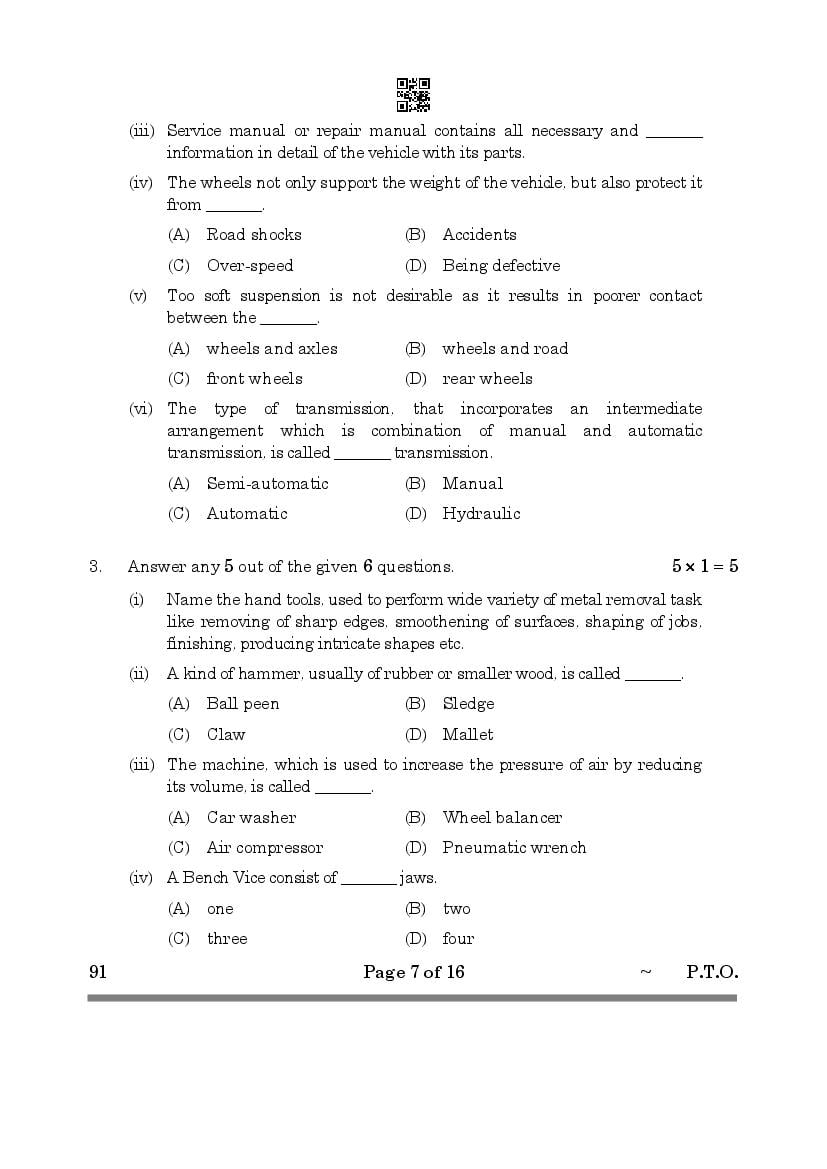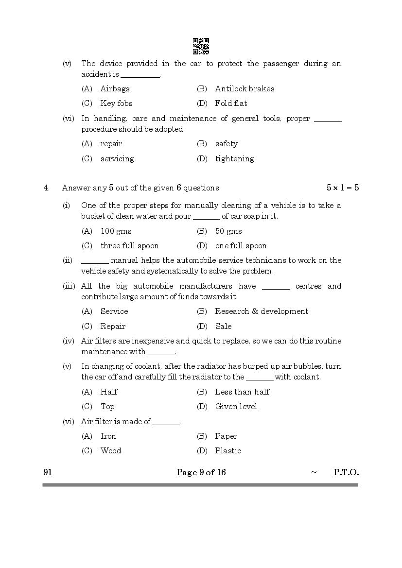 More Class 10 Automotive Question Paper