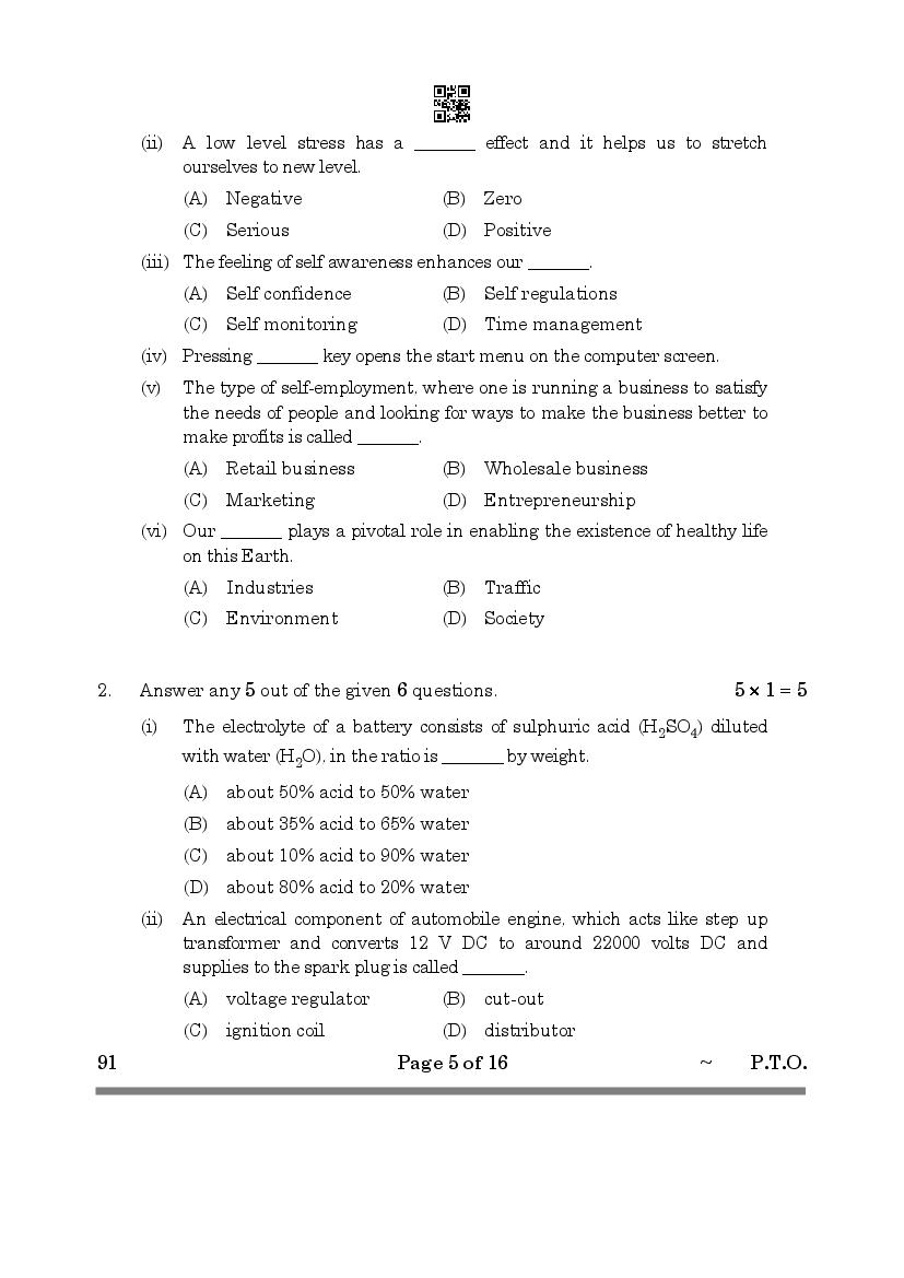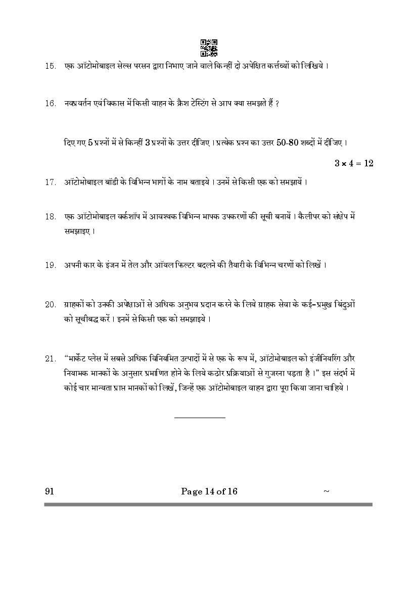 The CBSE question paper for class 10 Automotive of the exam held in past years is as follows.