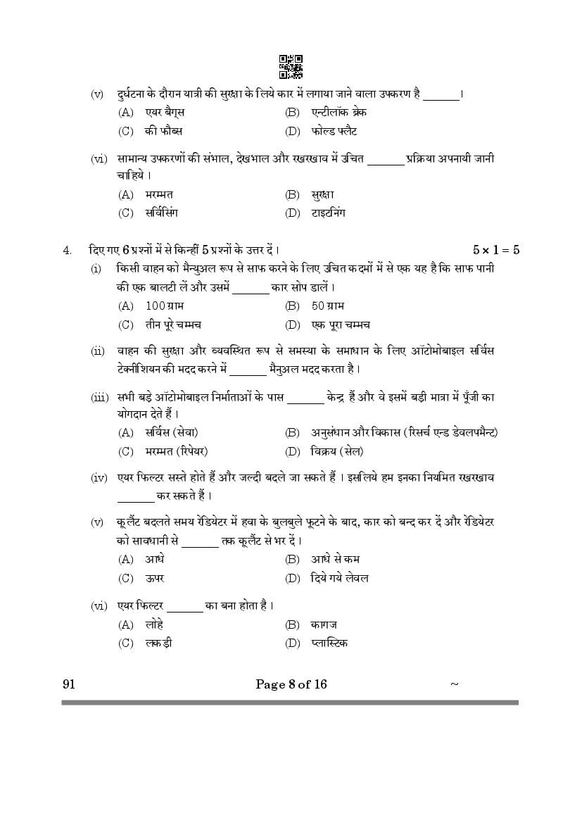 CBSE Class 10 Question Paper 2025 Automotive View Download
