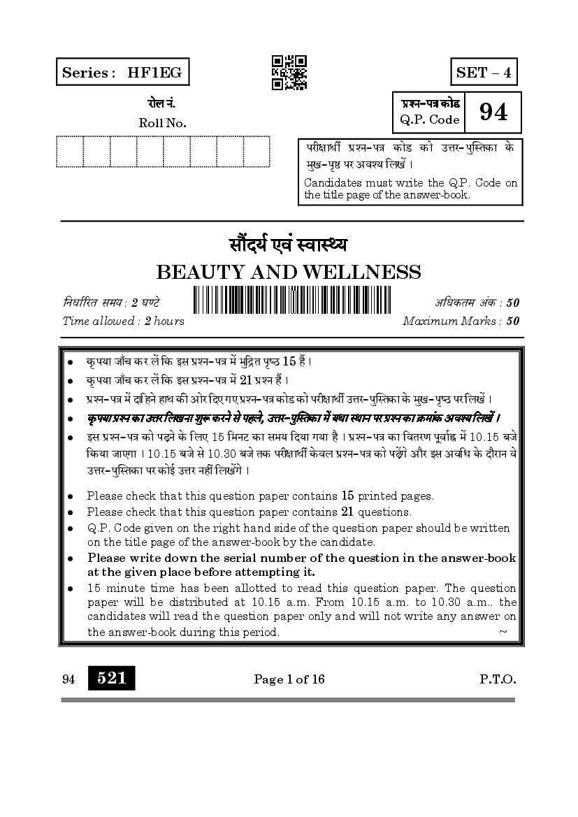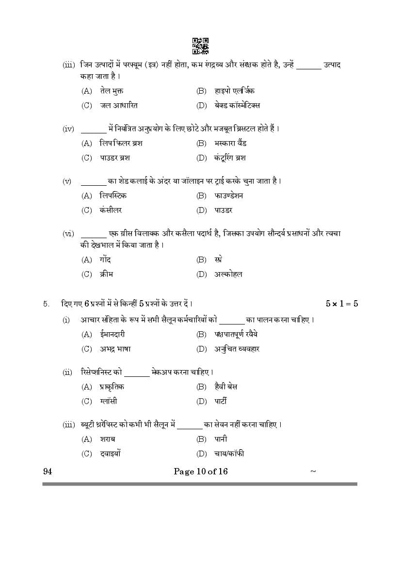 CBSE Class 10 Question Paper 2025 Beauty and Wellness View Download