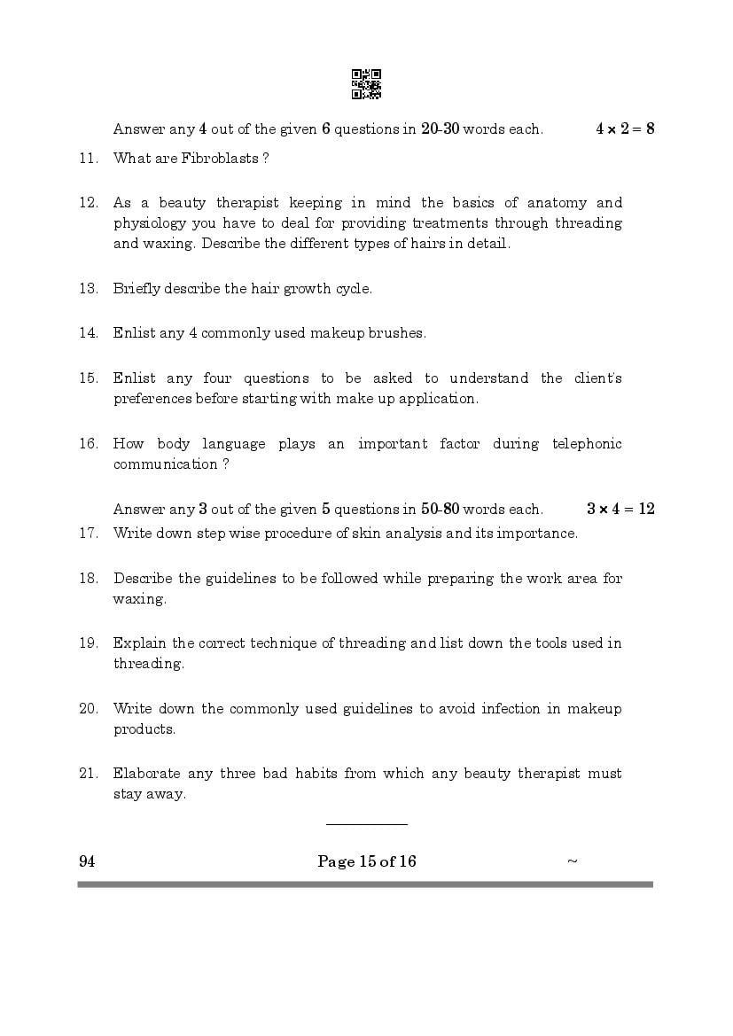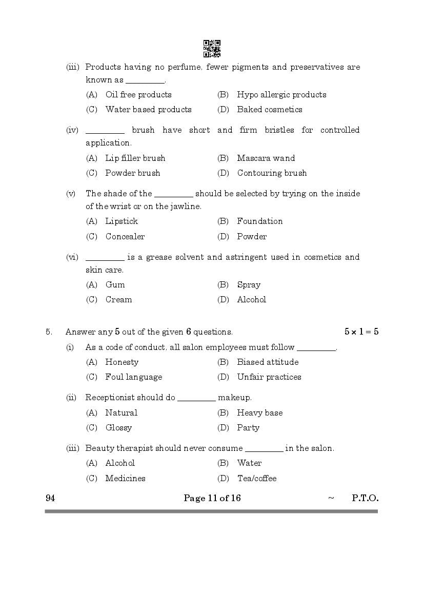 | 10 Exam | Beauty and Wellness Question Paper | Beauty and Wellness Answer Key |