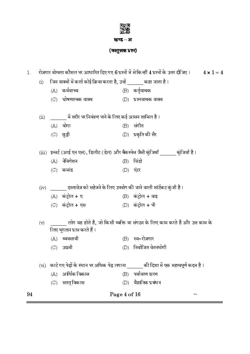 CBSE Class 10 Beauty and Wellness Question Paper 2024 PDF Download Link – Click Here to Download Question Paper