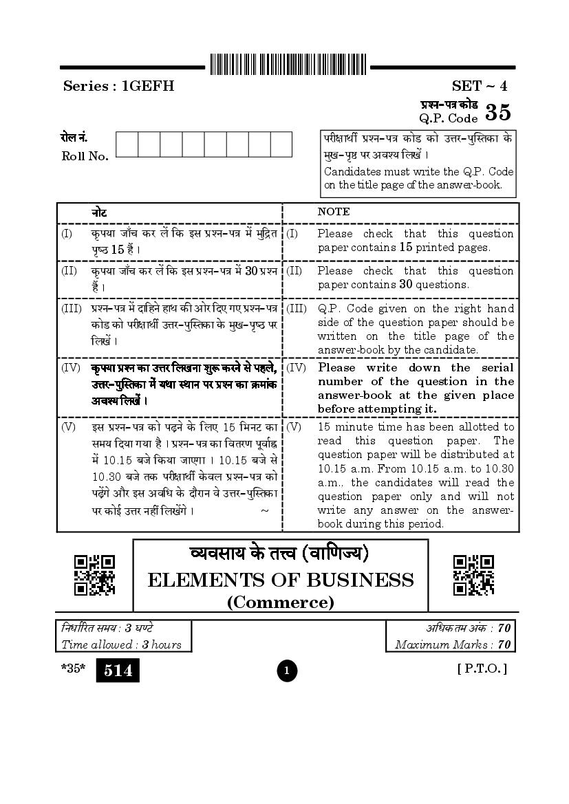 CBSE Class 10 Elements of Business Question Paper 2024 PDF Download Link – Click Here to Download Question Paper