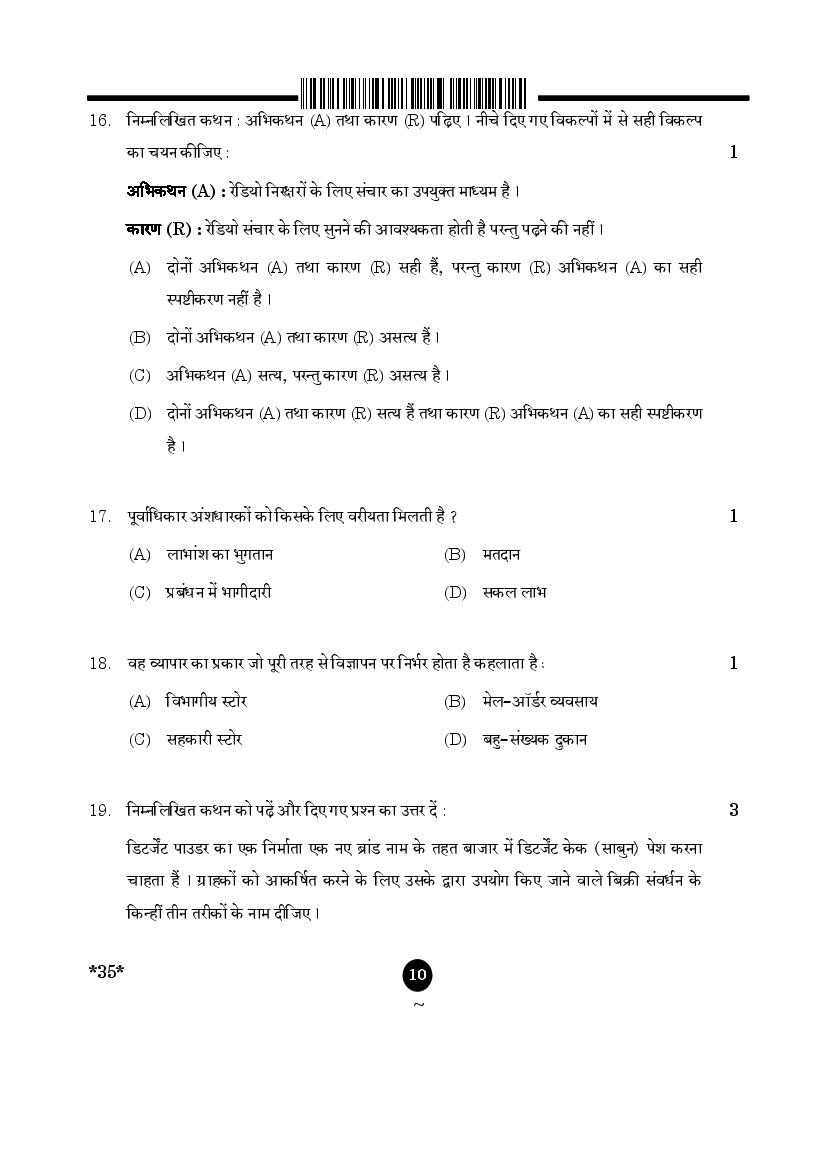 CBSE Class 10 Question Paper 2025 Elements of Business View Download