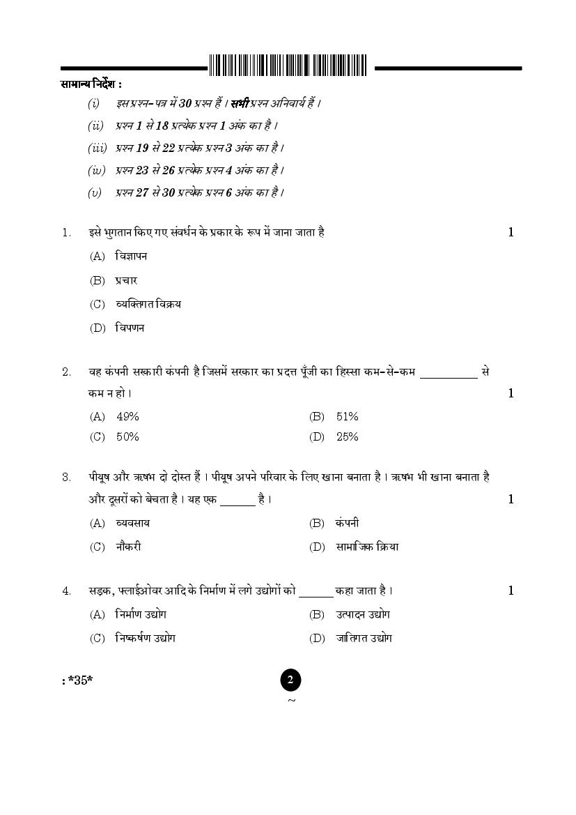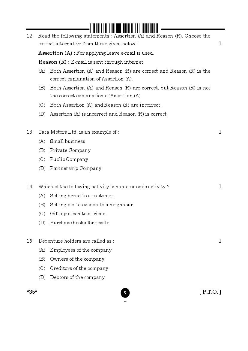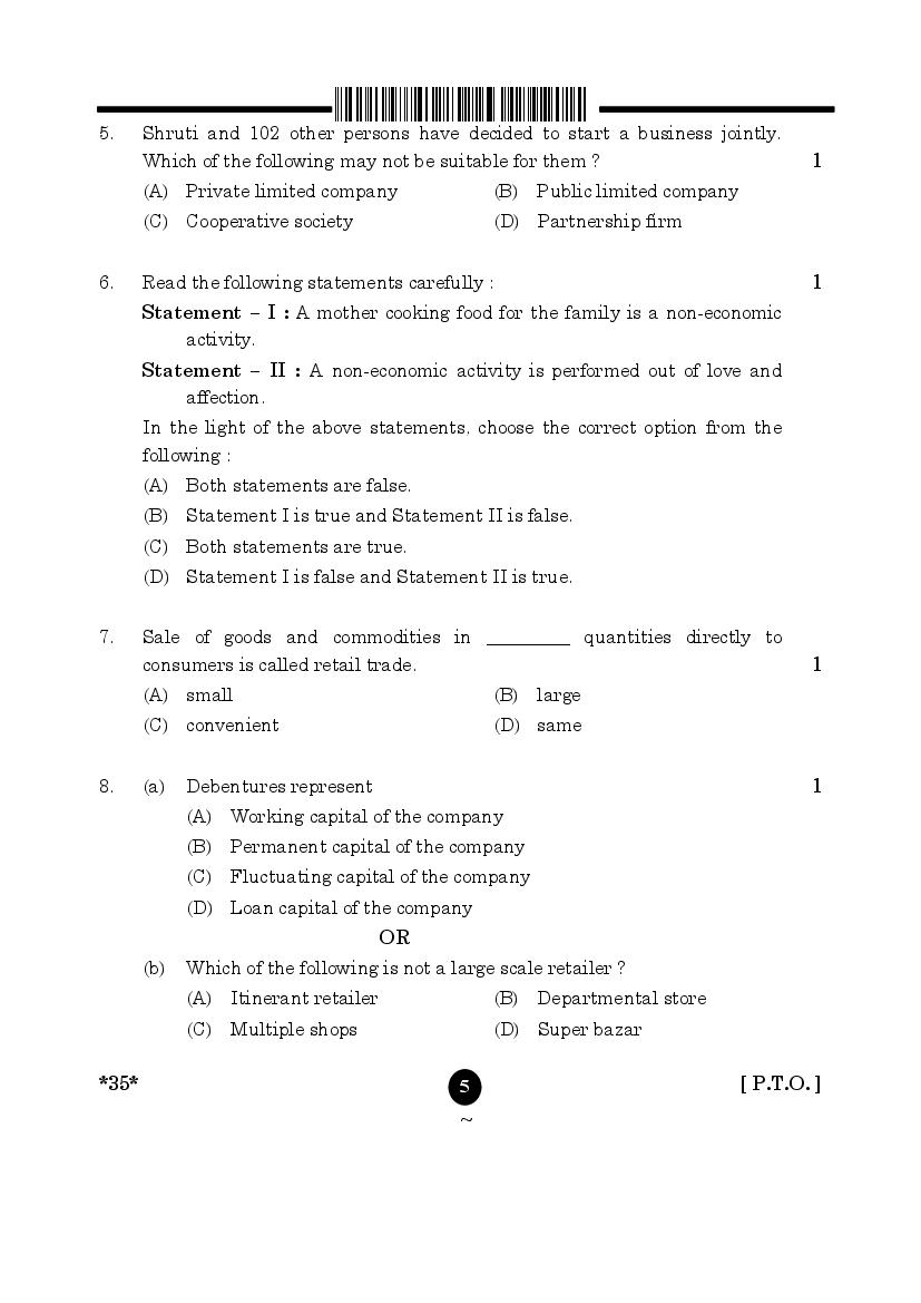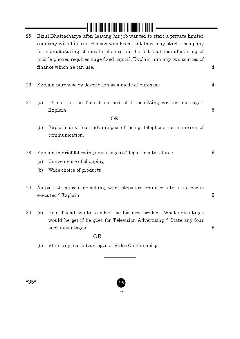 More Class 10 Elements of Business Question Paper