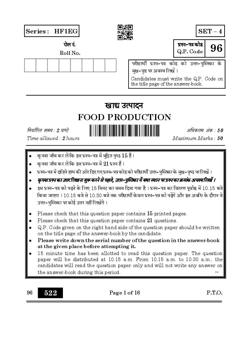 The CBSE question paper for class 10 Food Production of the exam held in past years is as follows.