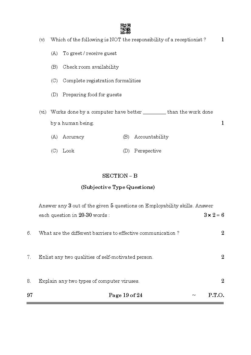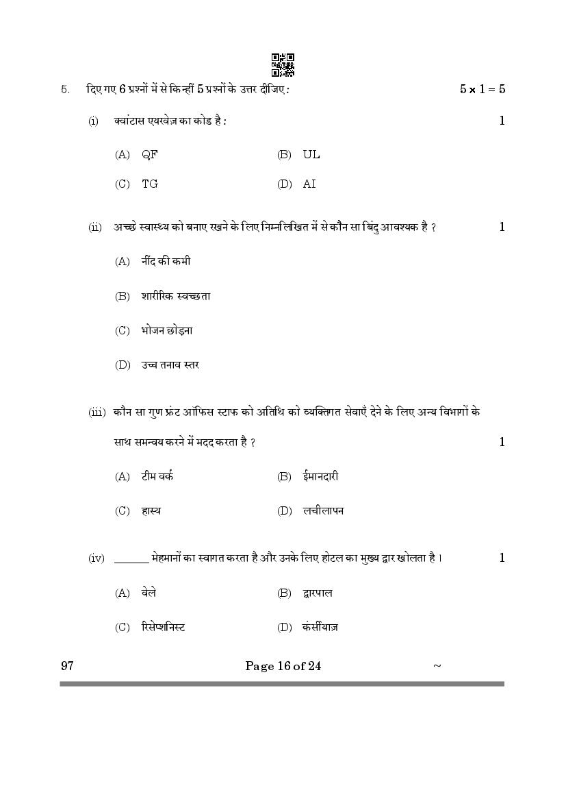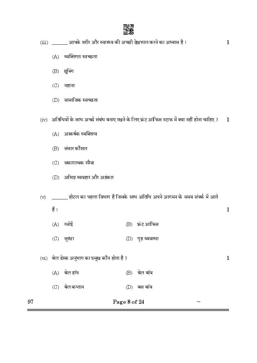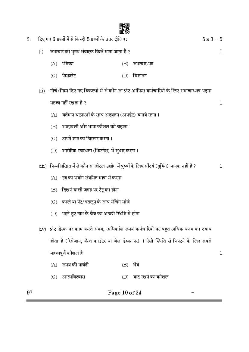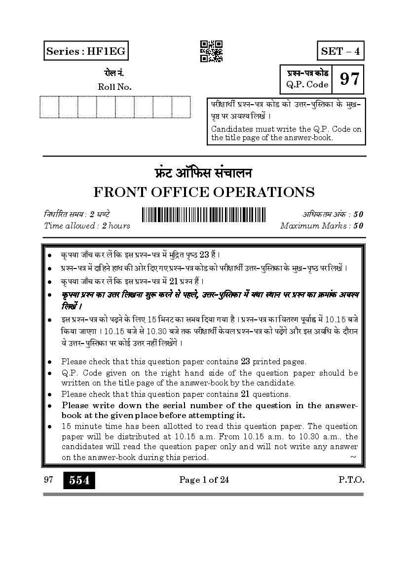 CBSE Class 10 Question Paper 2025 Front Office Operations View Download