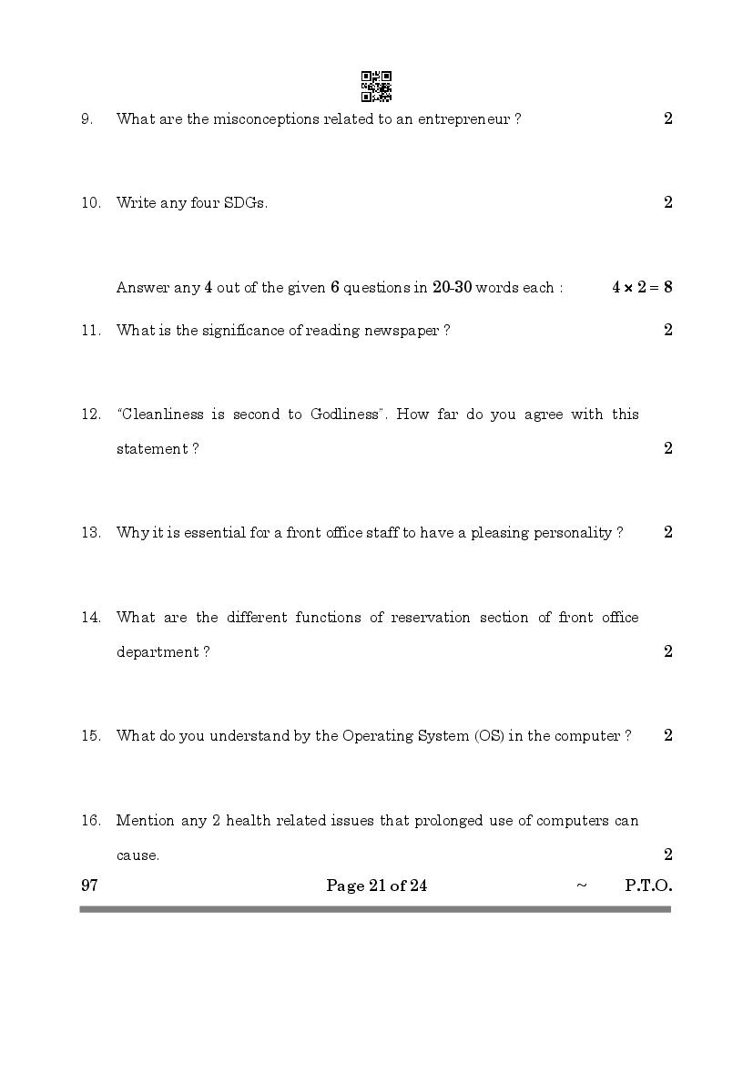 The CBSE question paper for class 10 Front Office Operations of the exam held in past years is as follows.