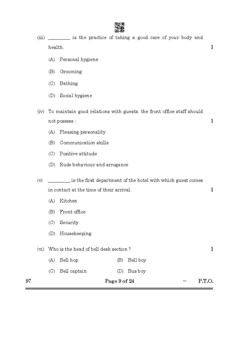 CBSE Class 10 Front Office Operations Question Paper 2024 PDF Download Link – Click Here to Download Question Paper