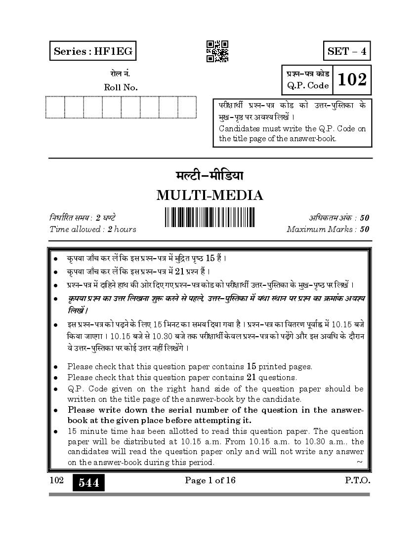 The CBSE question paper for class 10 Multimedia of the exam held in past years is as follows.