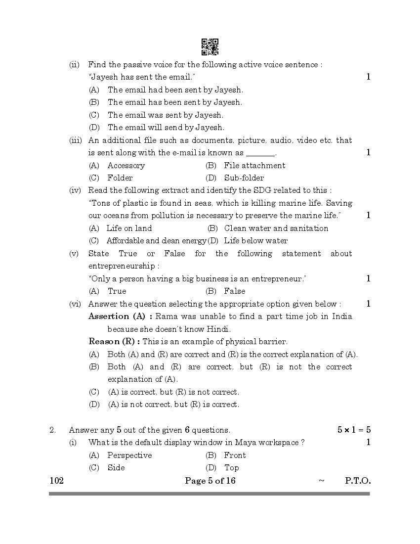CBSE Class 10 Multimedia Question Paper 2026 PDF