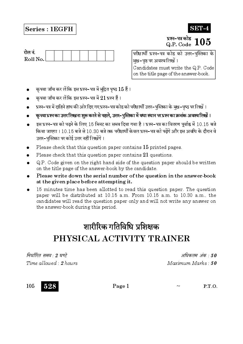 The CBSE question paper for class 10 Physical Activity Trainer of the exam held in past years is as follows.