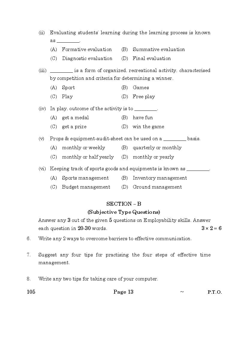 | 10 Exam | Physical Activity Trainer Question Paper | Physical Activity Trainer Answer Key |