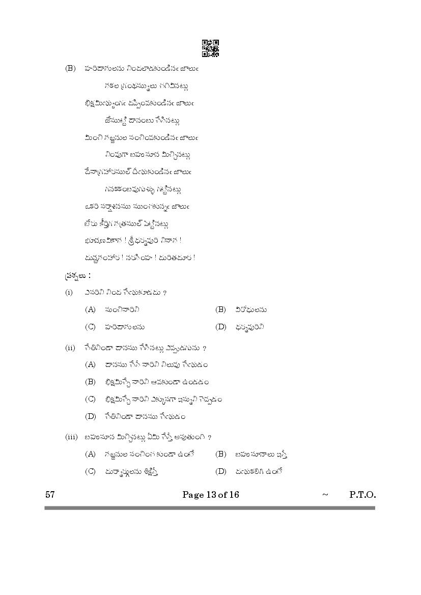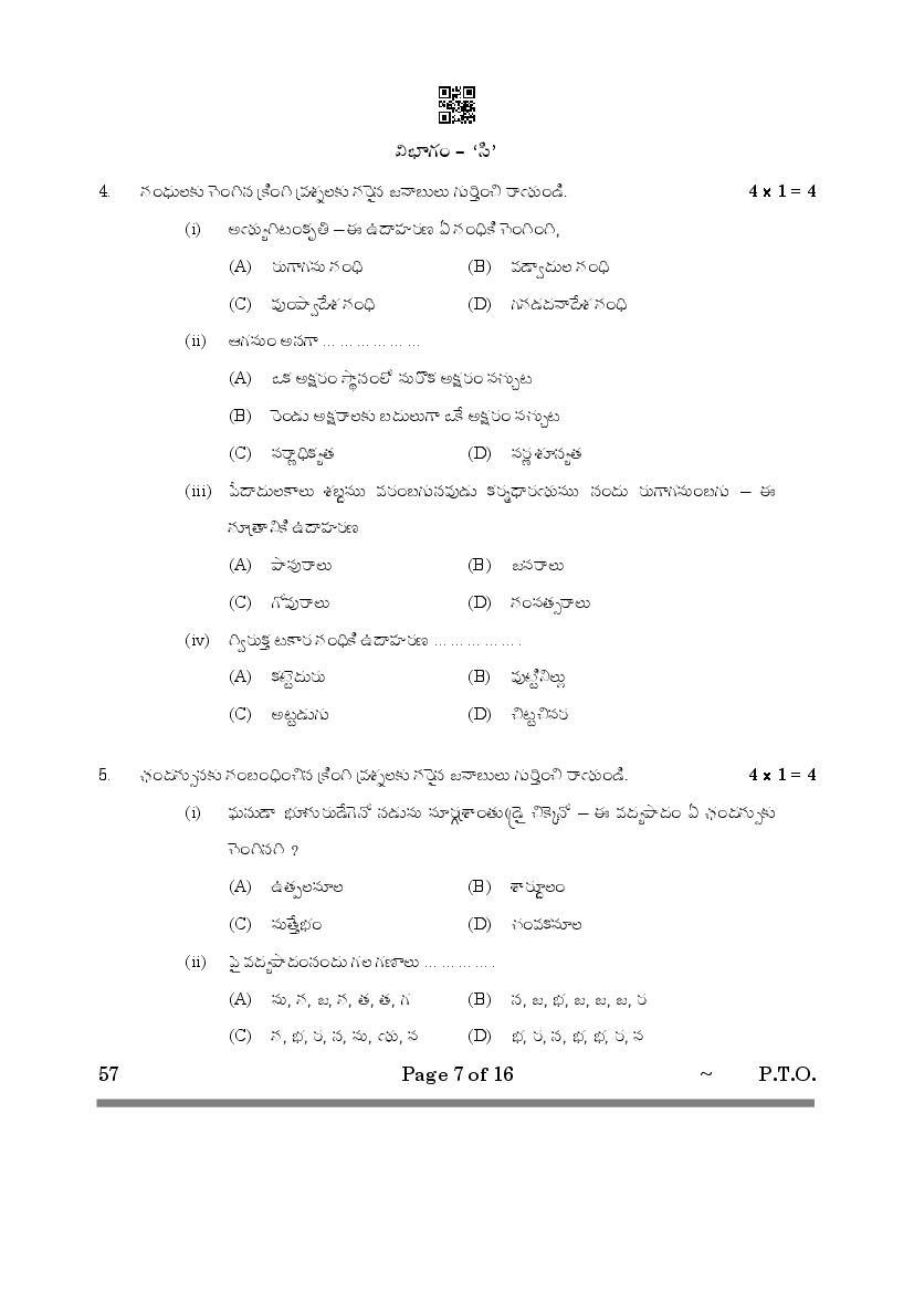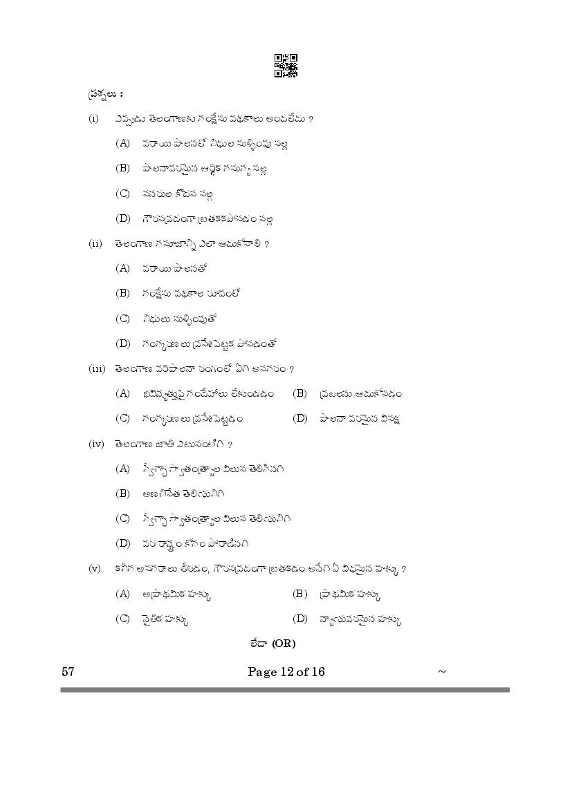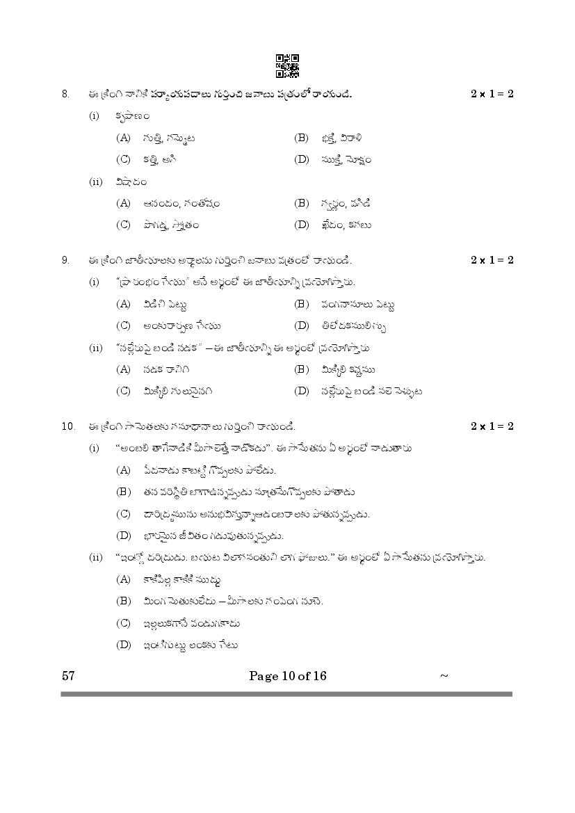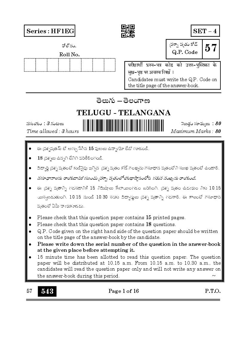 CBSE Class 10 Question Paper 2025 Telugu Telangana View Download