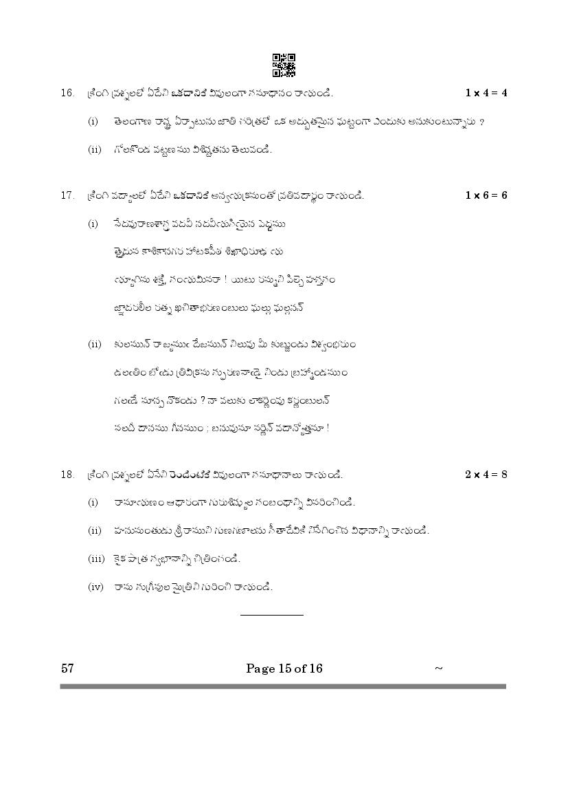 More Class 10 Telugu Telangana Question Paper