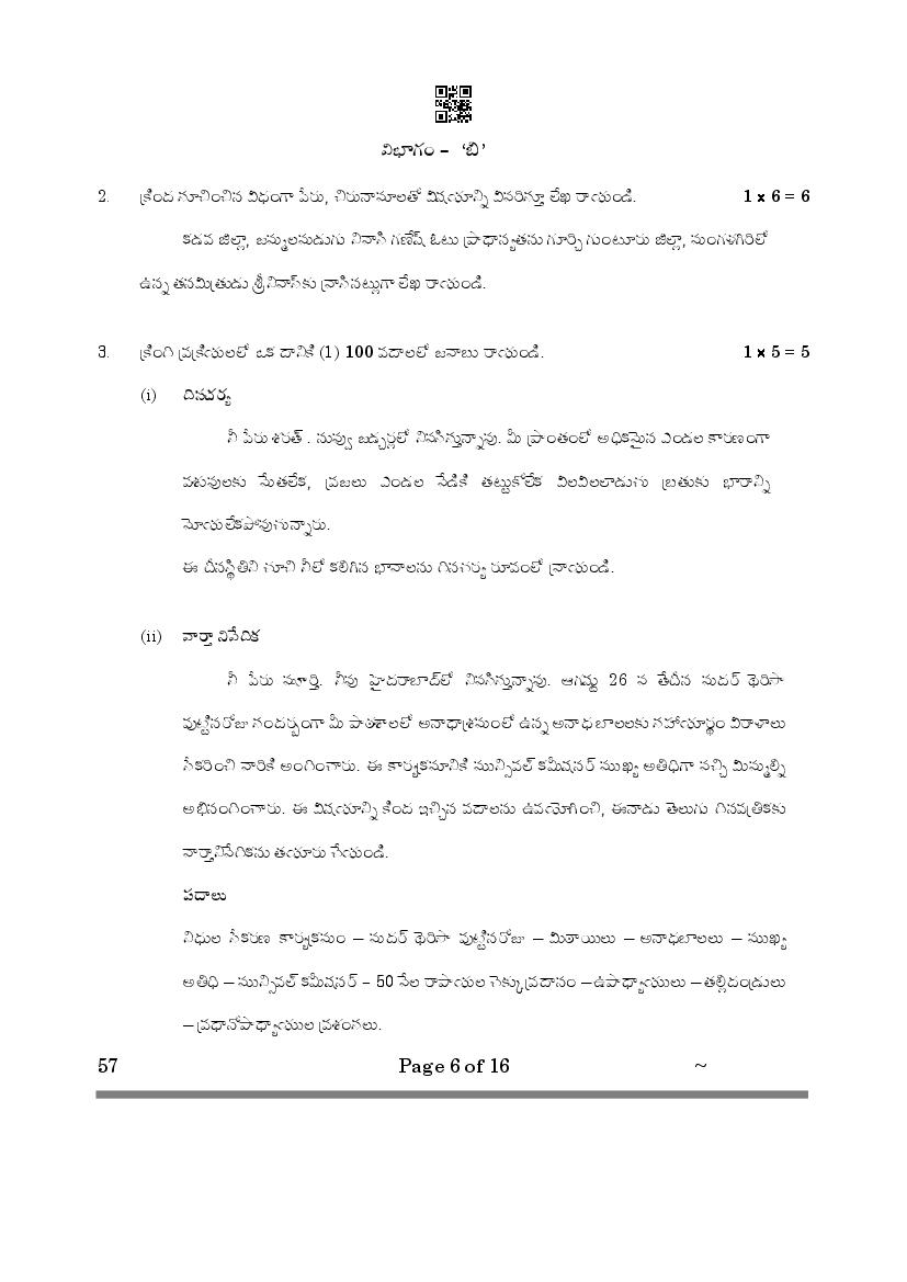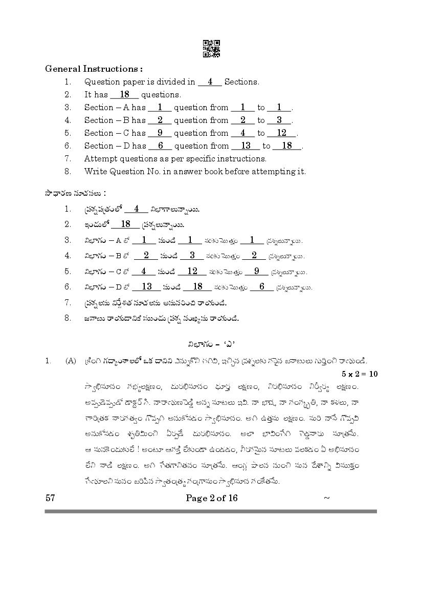 The CBSE question paper for class 10 Telugu Telangana of the exam held in past years is as follows.