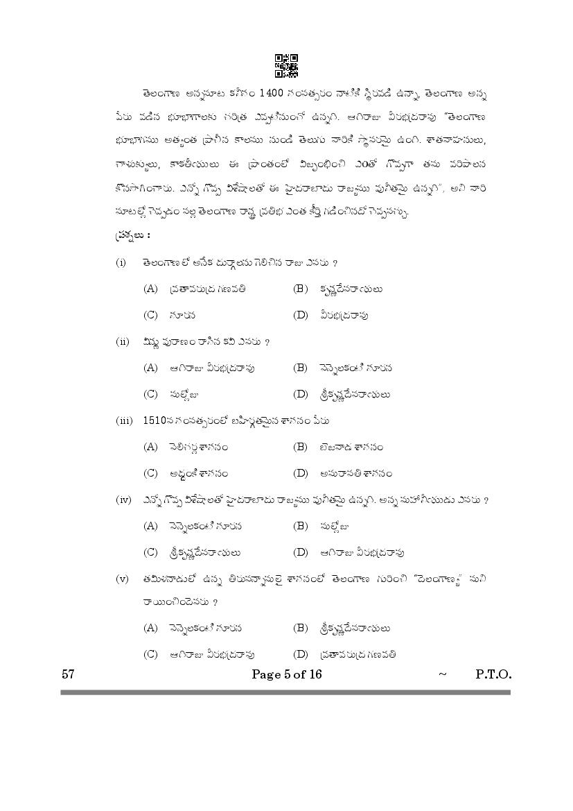 The complete Telugu Telangana question paper is as follows. You can read all questions asked in last year’s test here at aglasem.com.