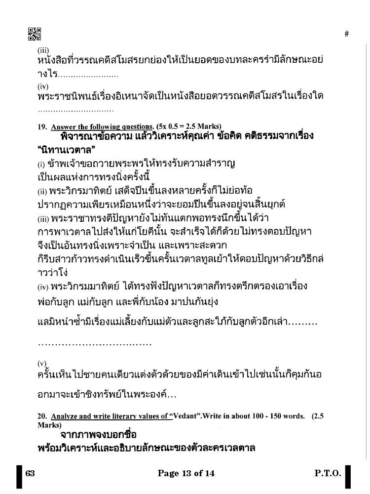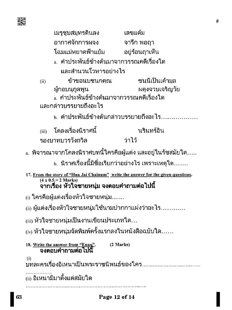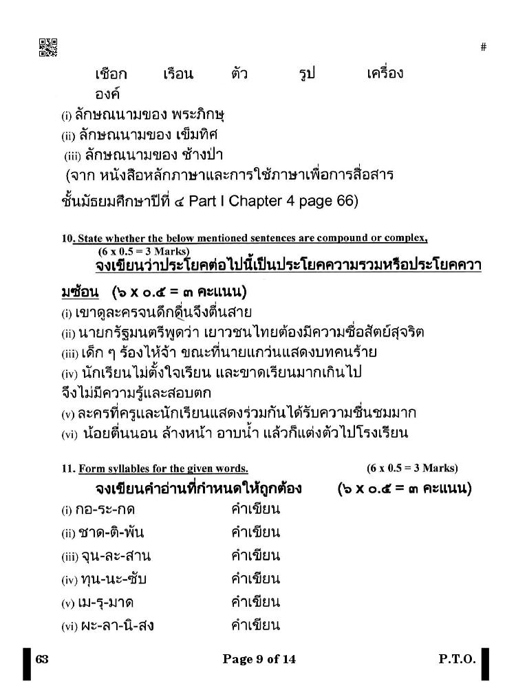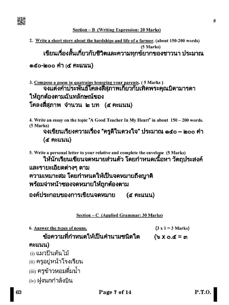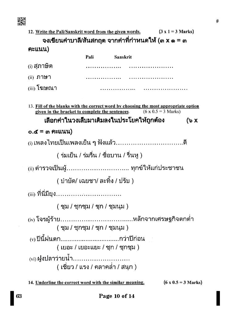 More Class 10 Thai Question Paper