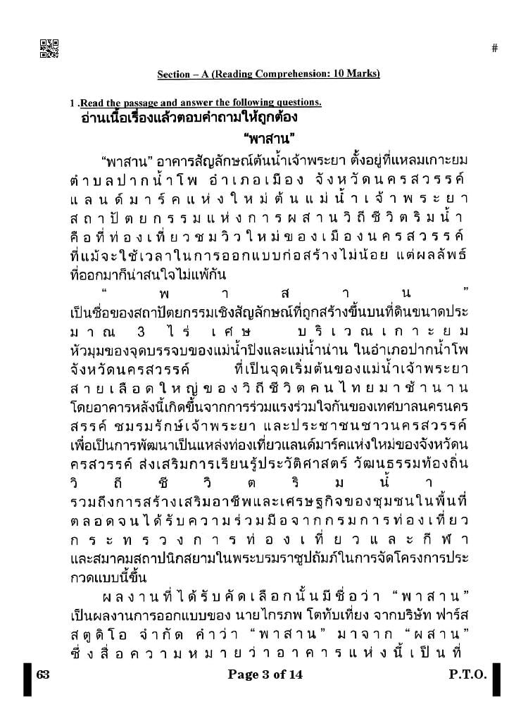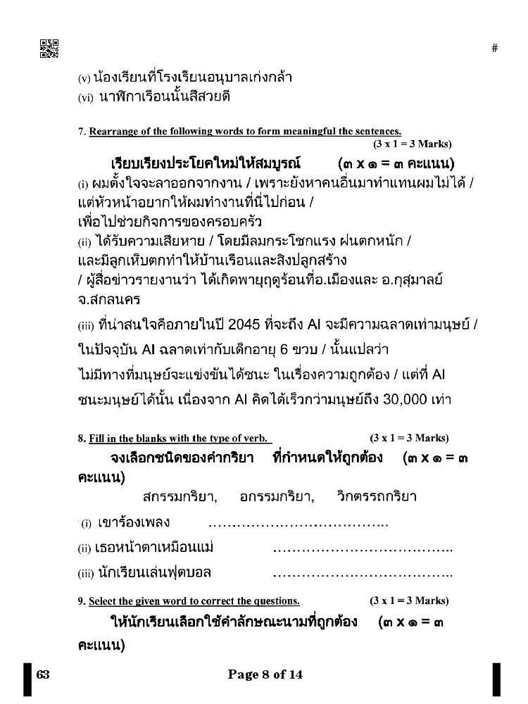 The complete Thai question paper is as follows. You can read all questions asked in last year’s test here at aglasem.com.
