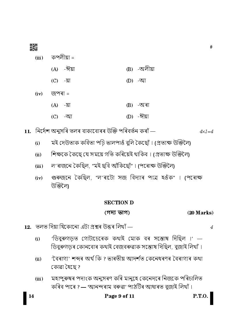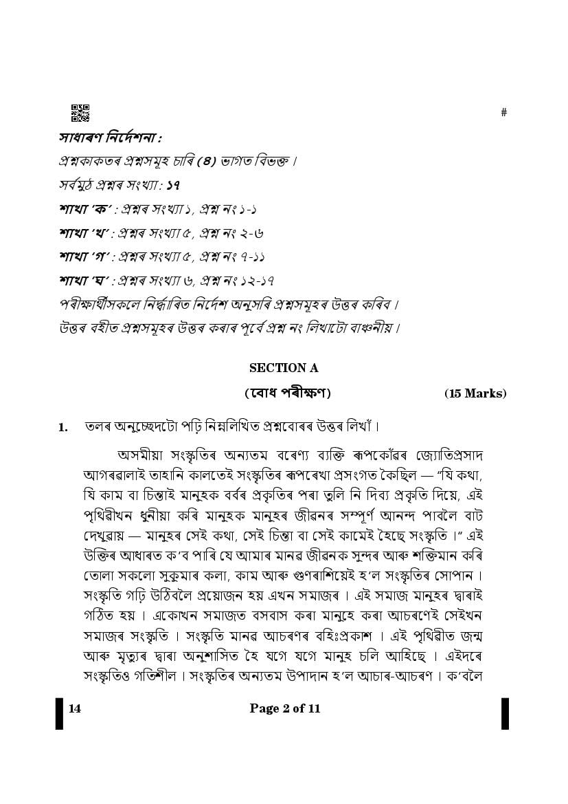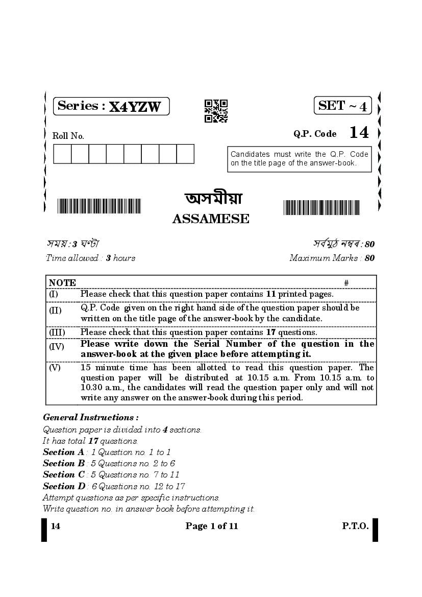 The CBSE question paper for class 12 Assamese of the exam held in past years is as follows.