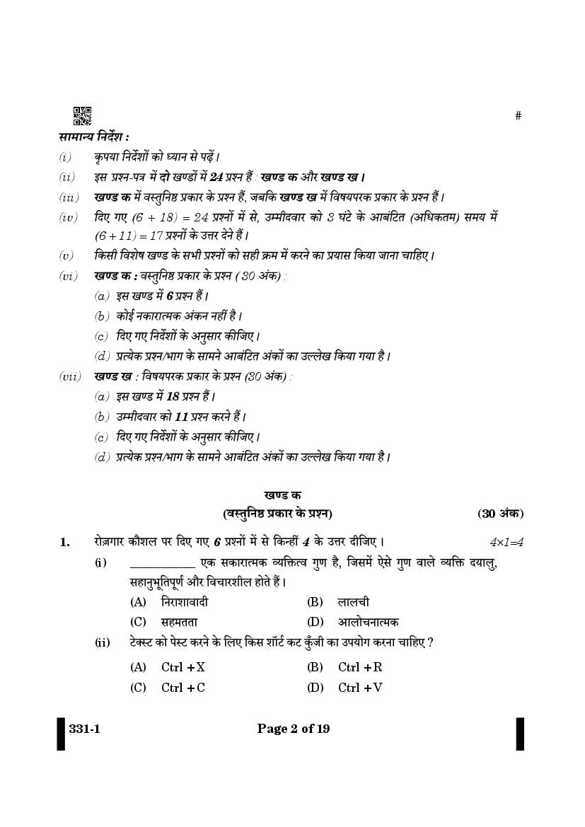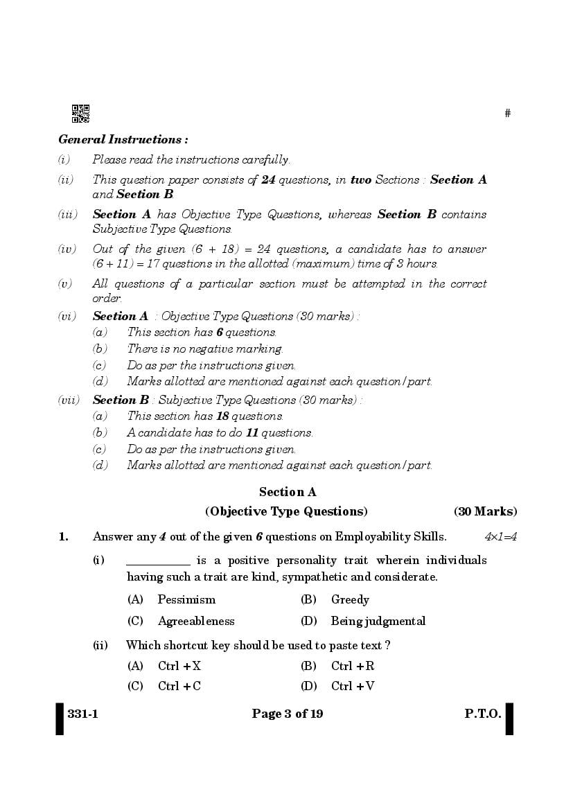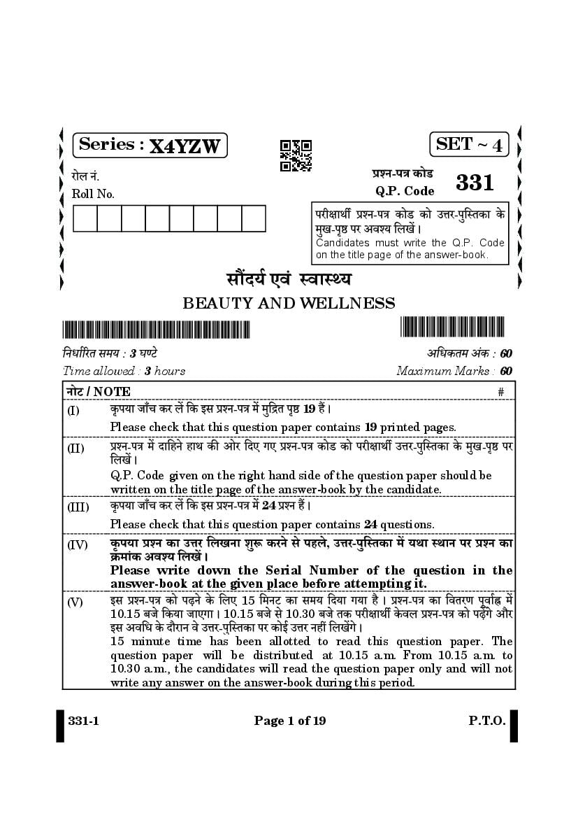 | Study Material Here | CBSE Class 12 Beauty and Wellness Previous Year Question Paper |