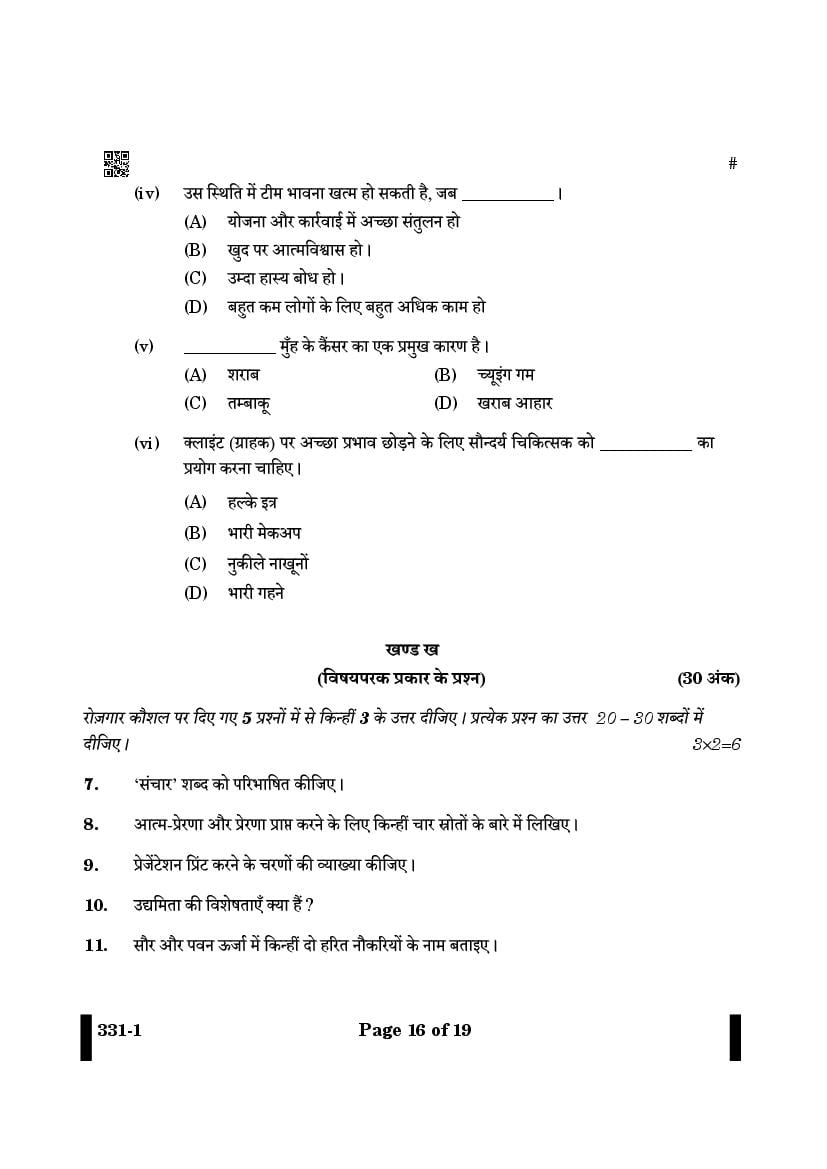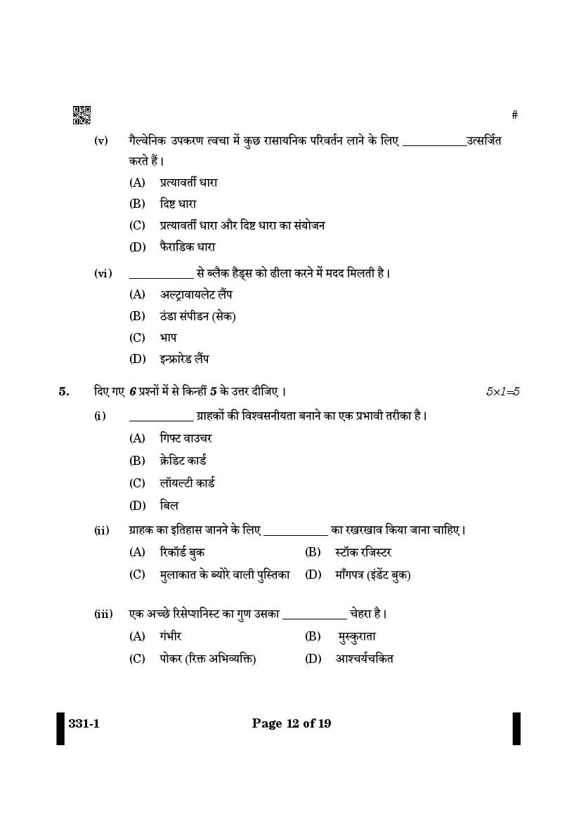 CBSE Class 12 Question Paper 2025 Beauty to Wellness View Download