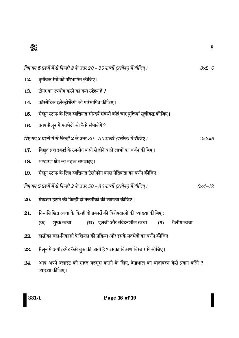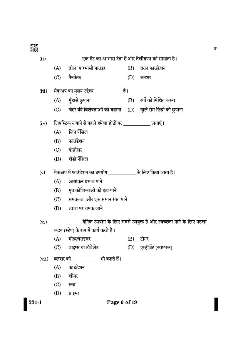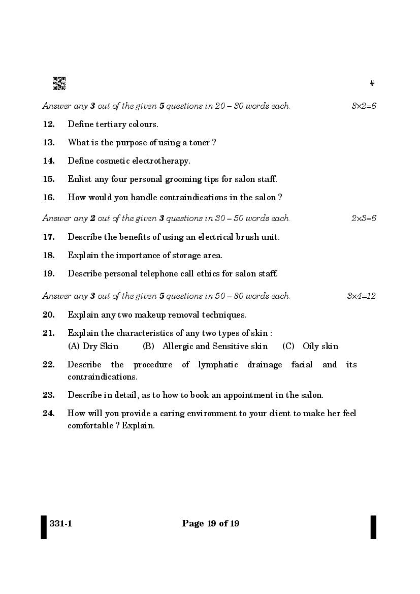 More Class 12 Beauty and Wellness Question Paper