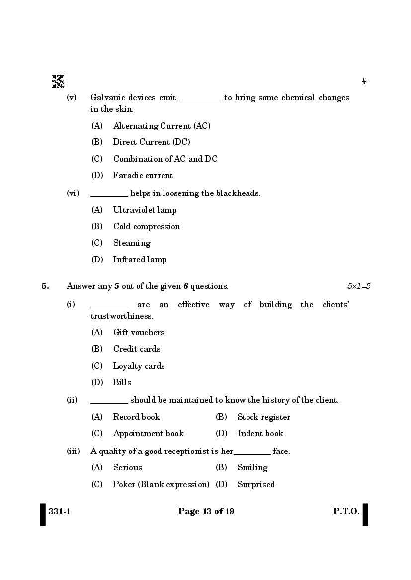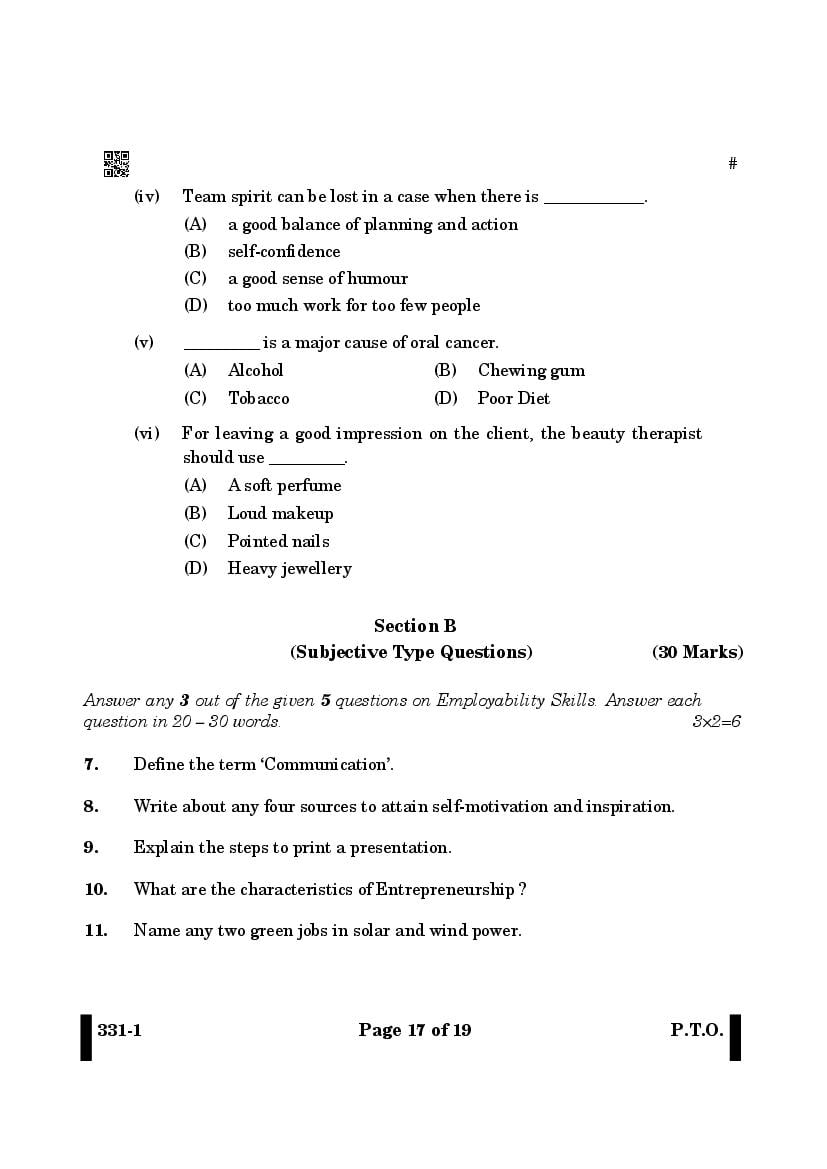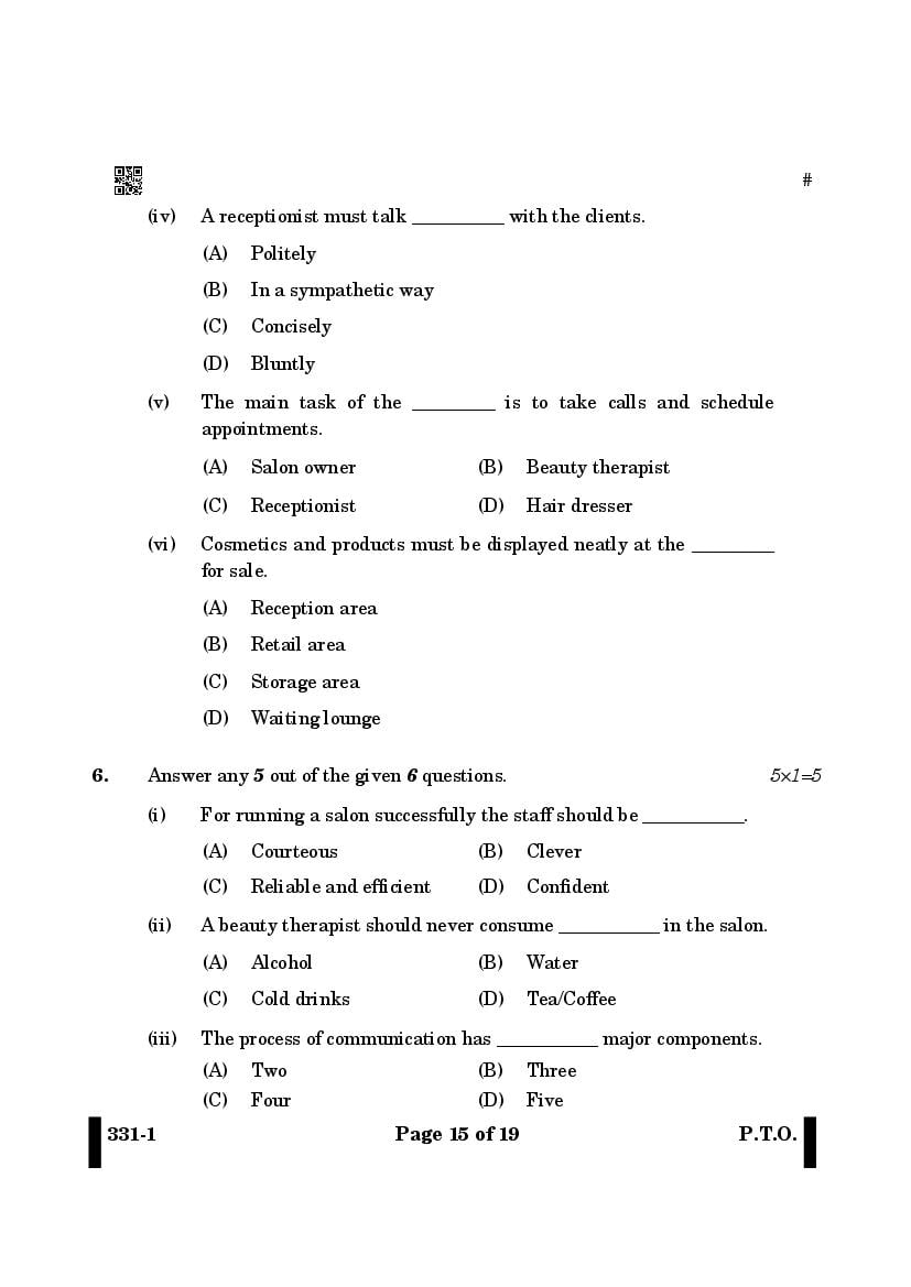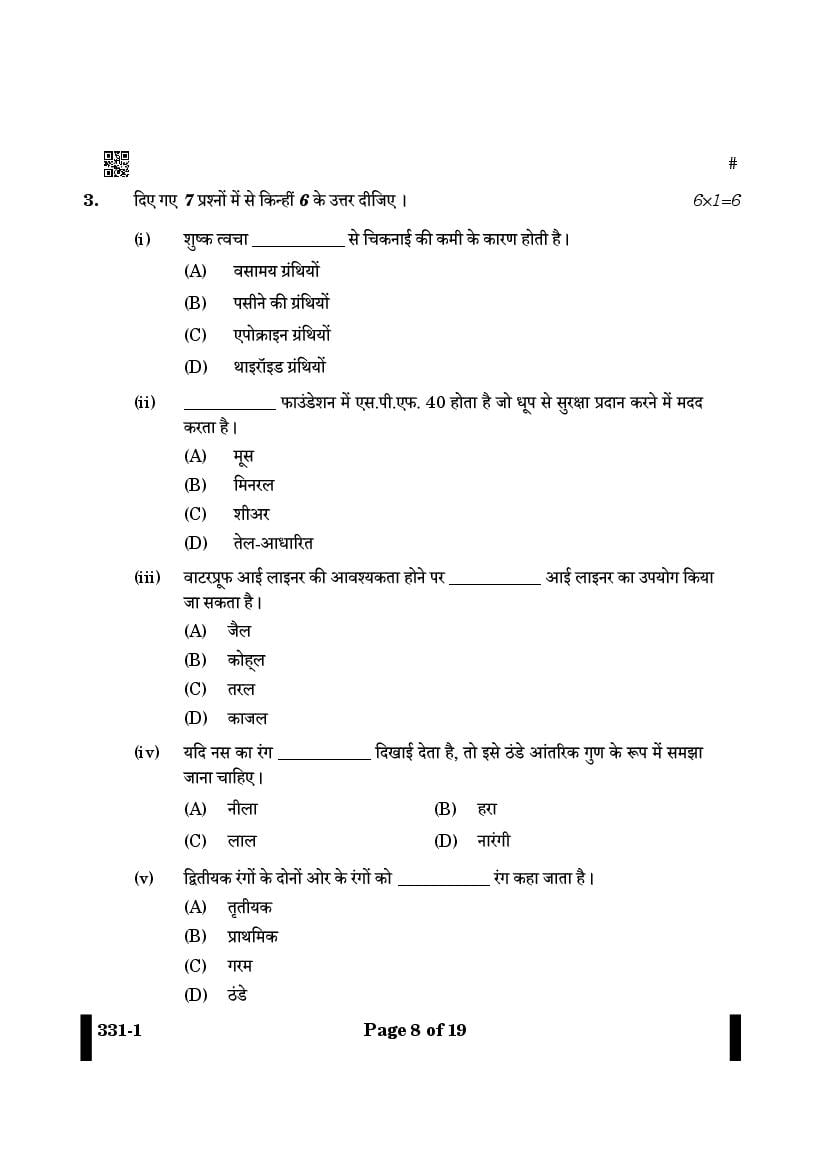 More Class 12 Beauty and Wellness Question Paper