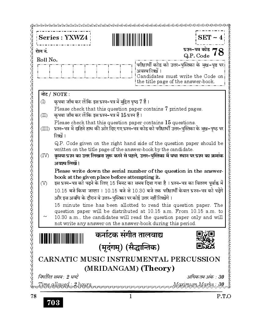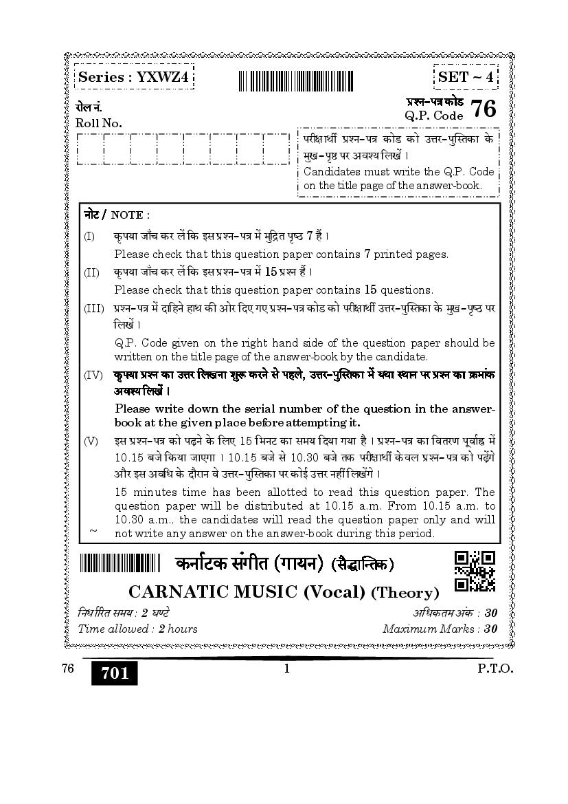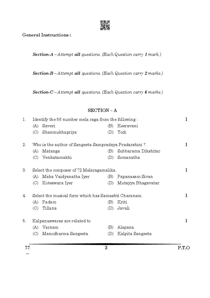 | Study Material Here | CBSE Class 12 Carnatic Music Previous Year Question Paper |