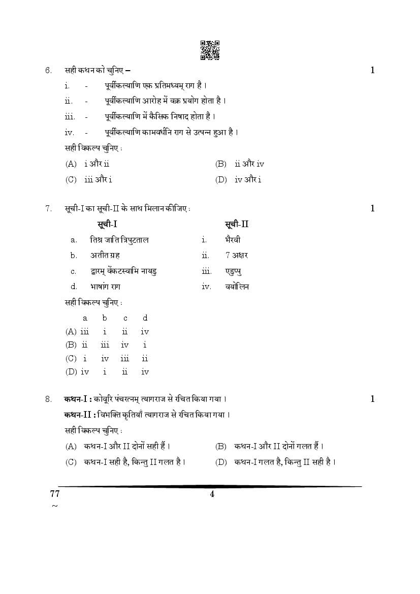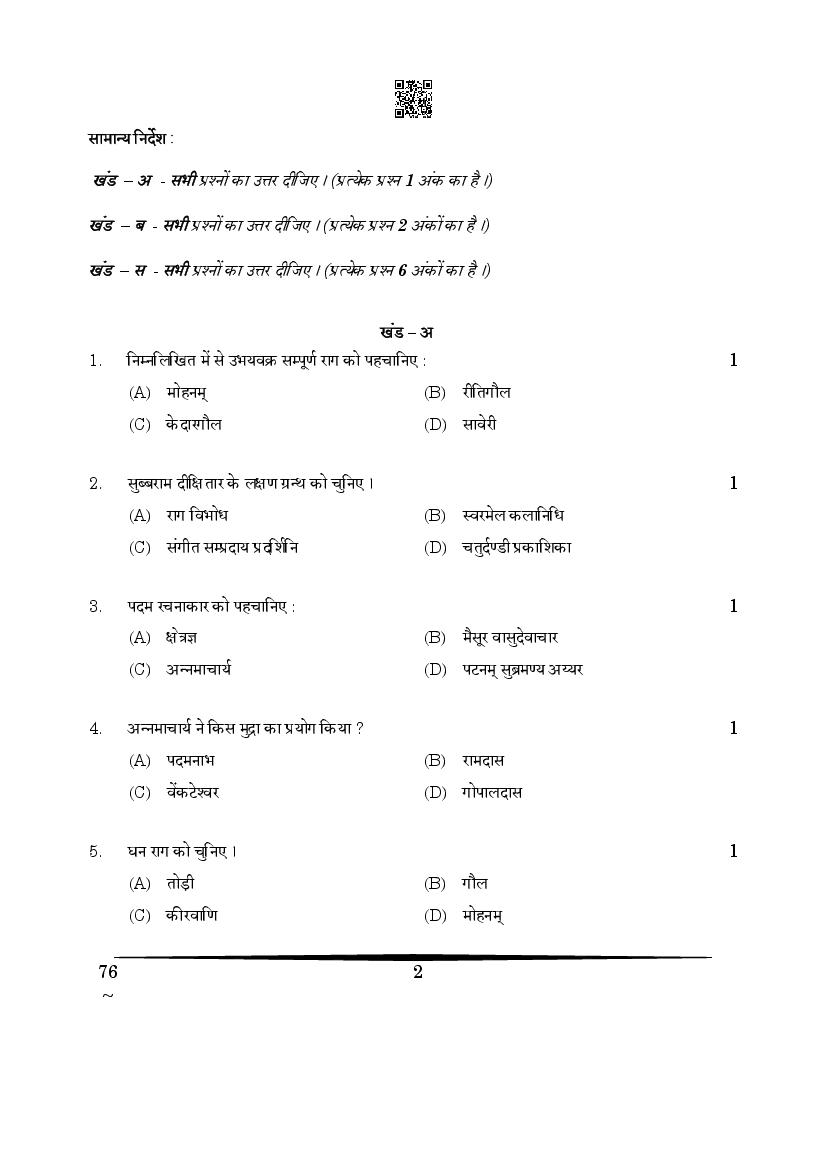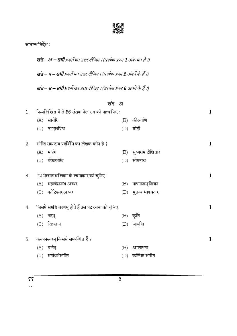 The CBSE question paper for class 12 Carnatic Music of the exam held in past years is as follows.