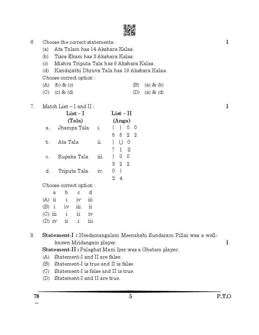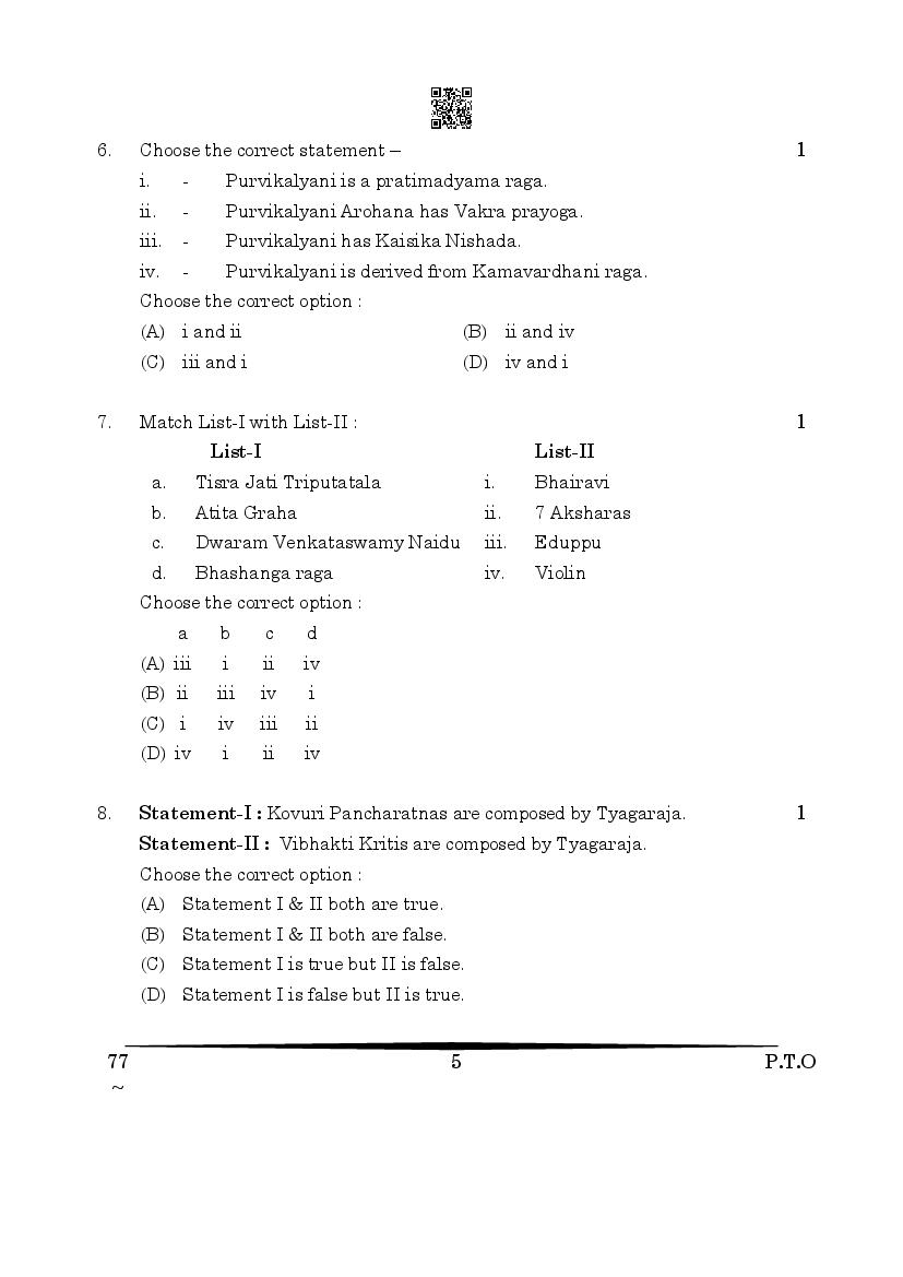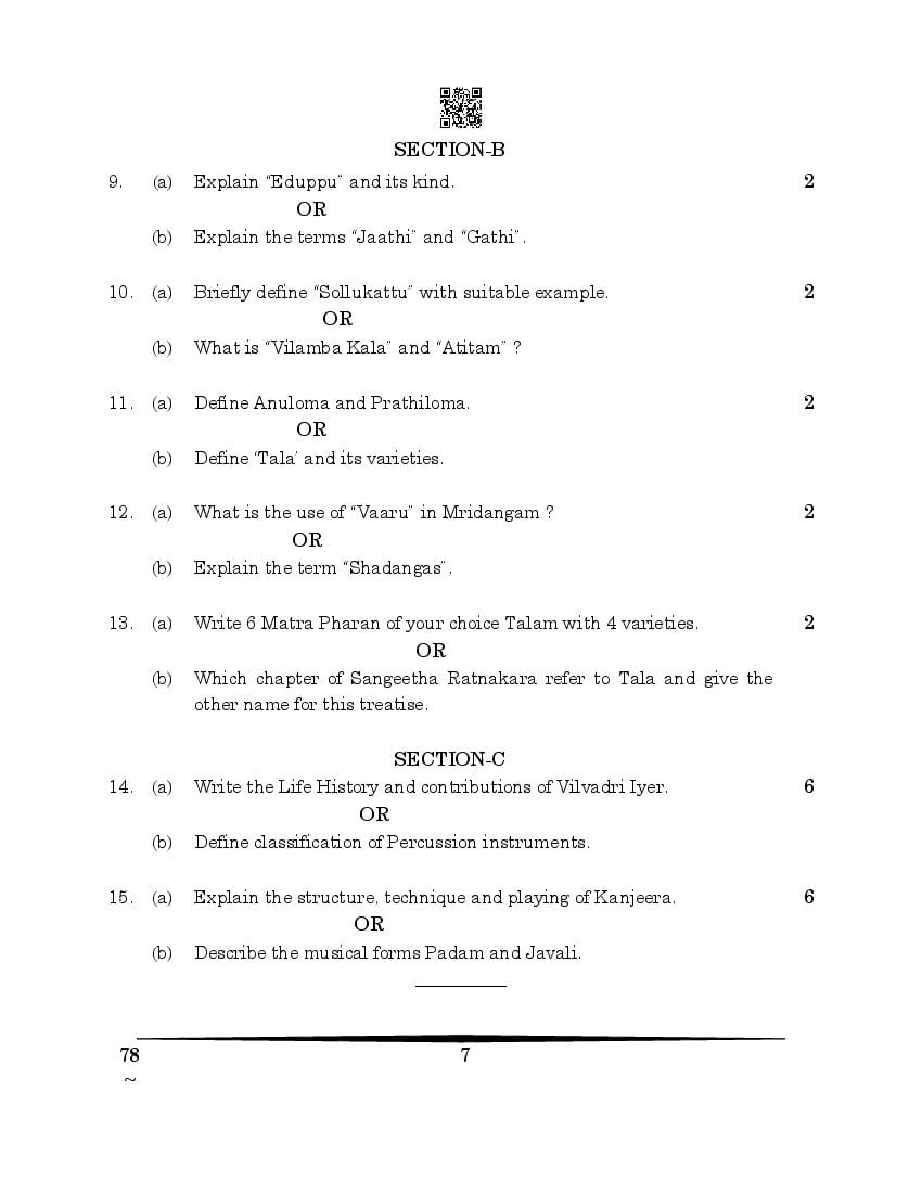 More Class 12 Carnatic Music Question Paper
