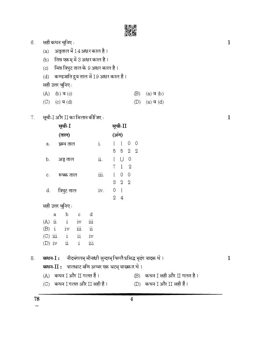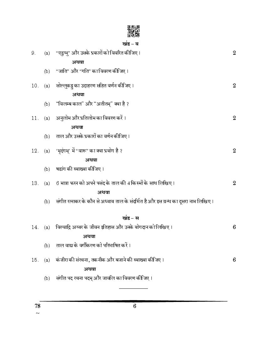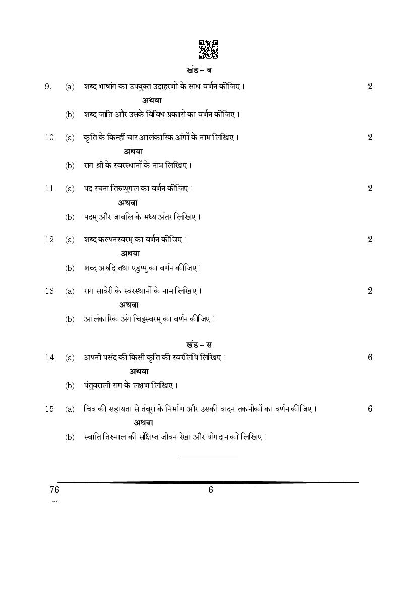 CBSE Class 12 Carnatic Music Question Paper 2026