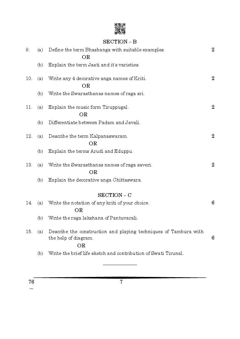 CBSE Class 12 Carnatic Music Question Paper 2023 PDF Download Link – Click Here to Download Question Paper