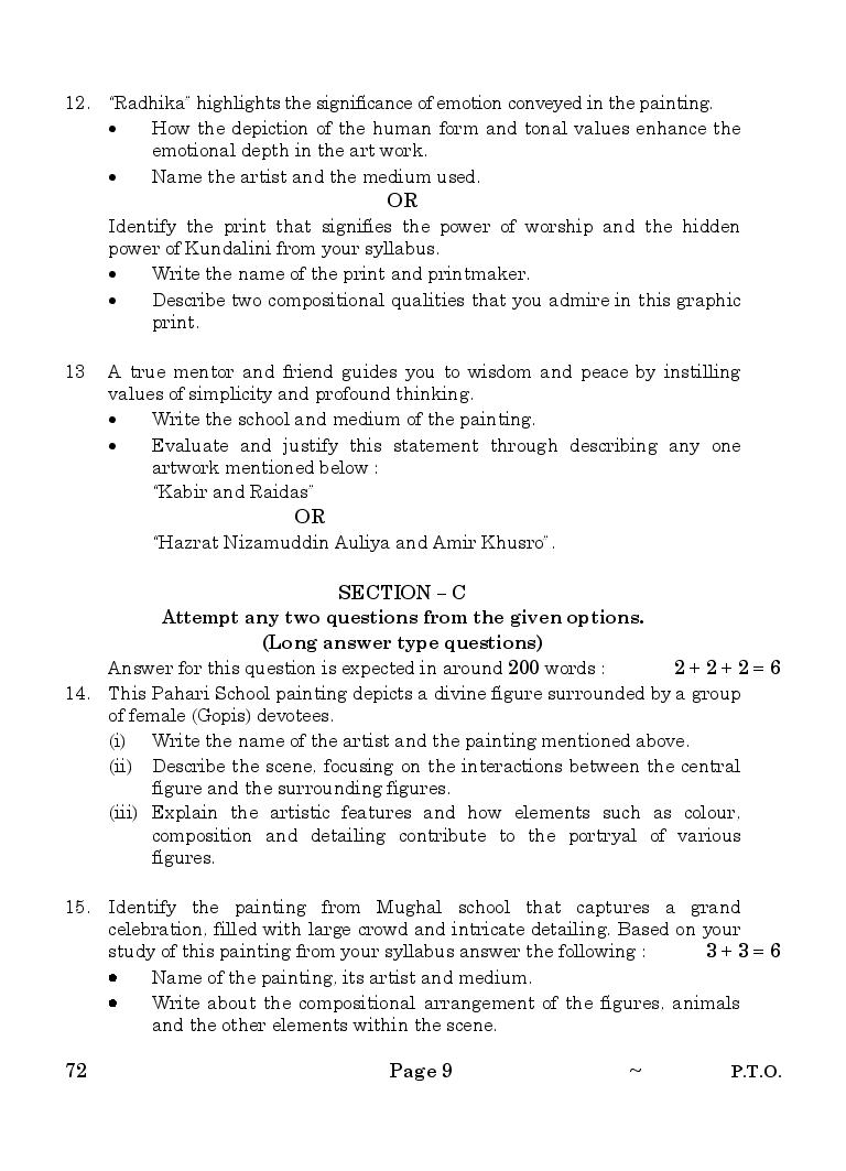 CBSE Class 12 Question Paper 2025 Commercial Art View Download