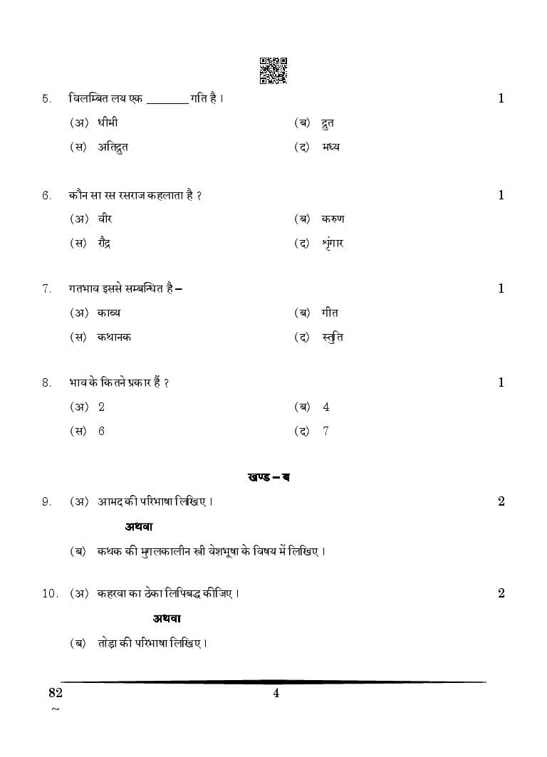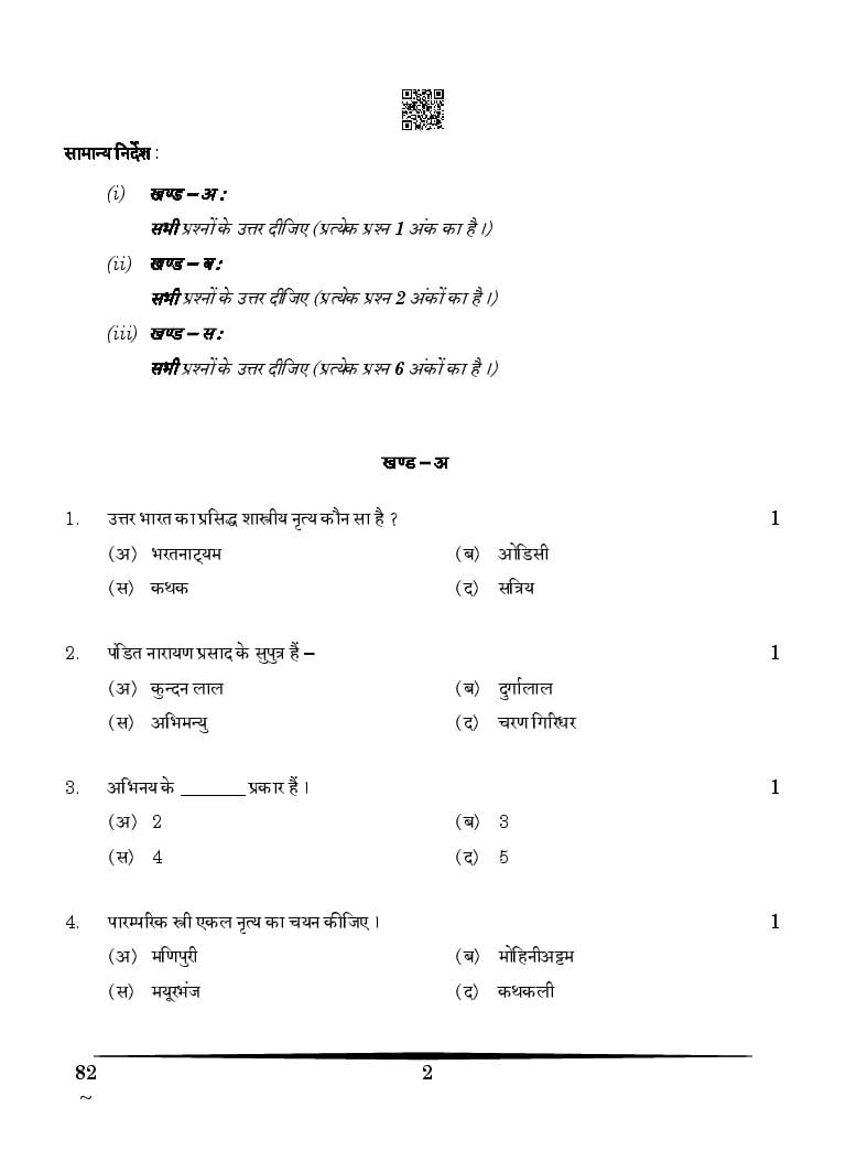 CBSE Class 12 Question Paper 2025 Dance View Download