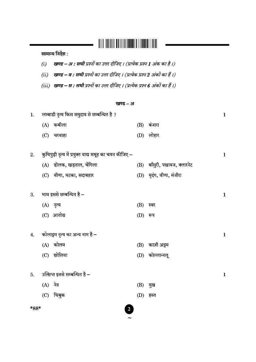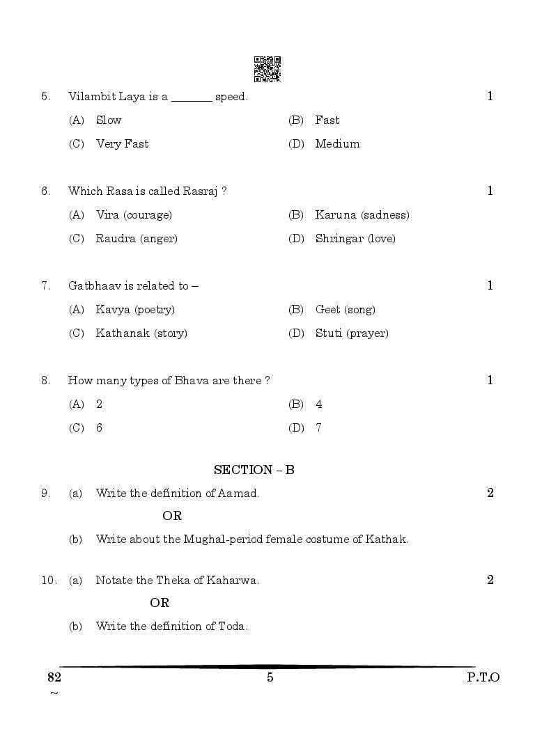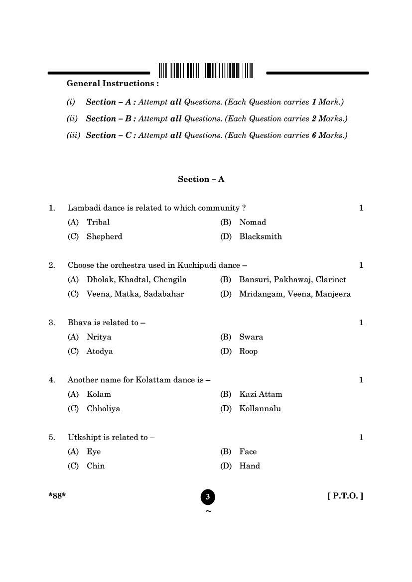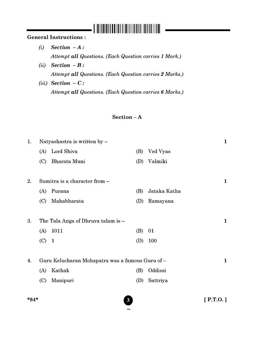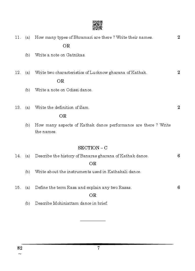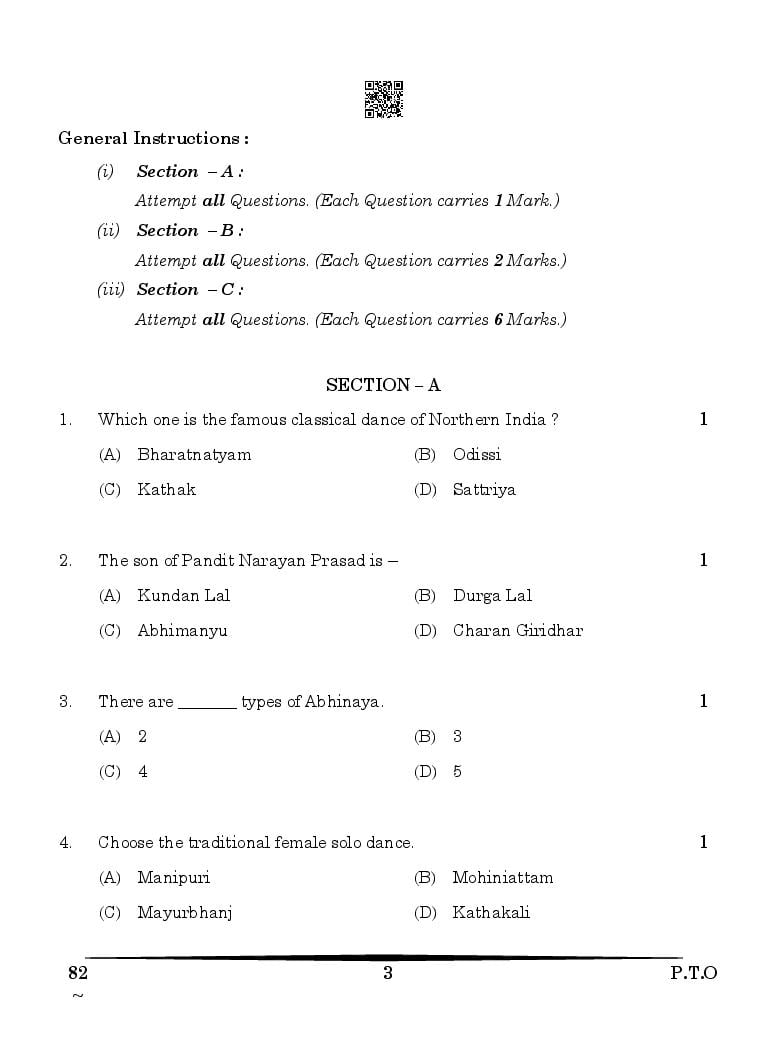 The CBSE question paper for class 12 Dance of the exam held in past years is as follows.