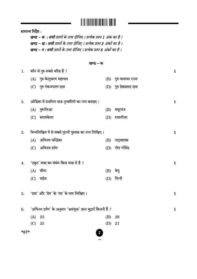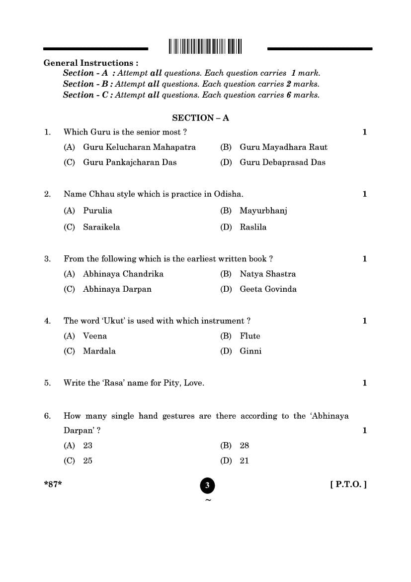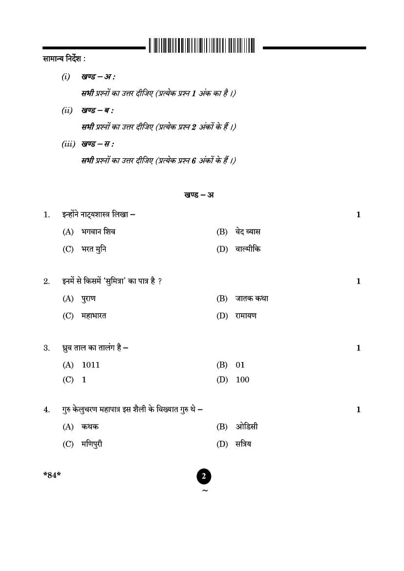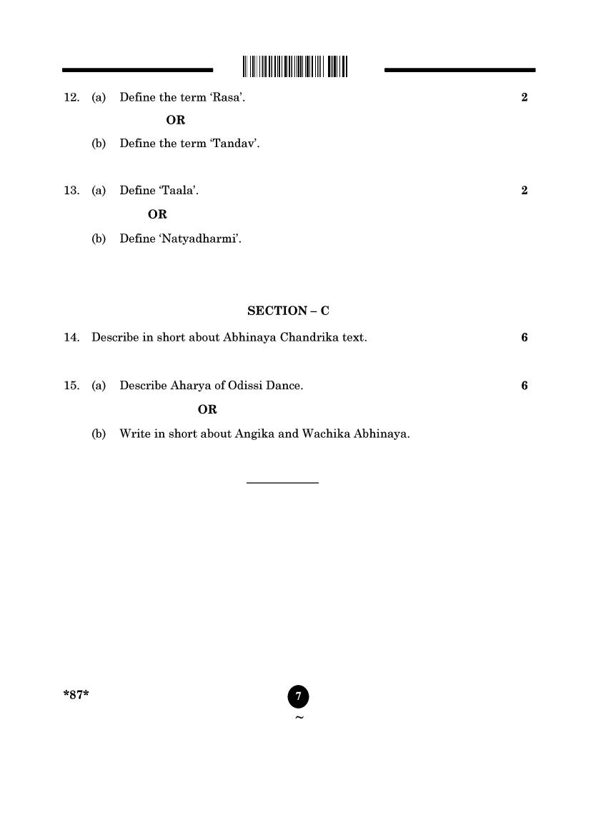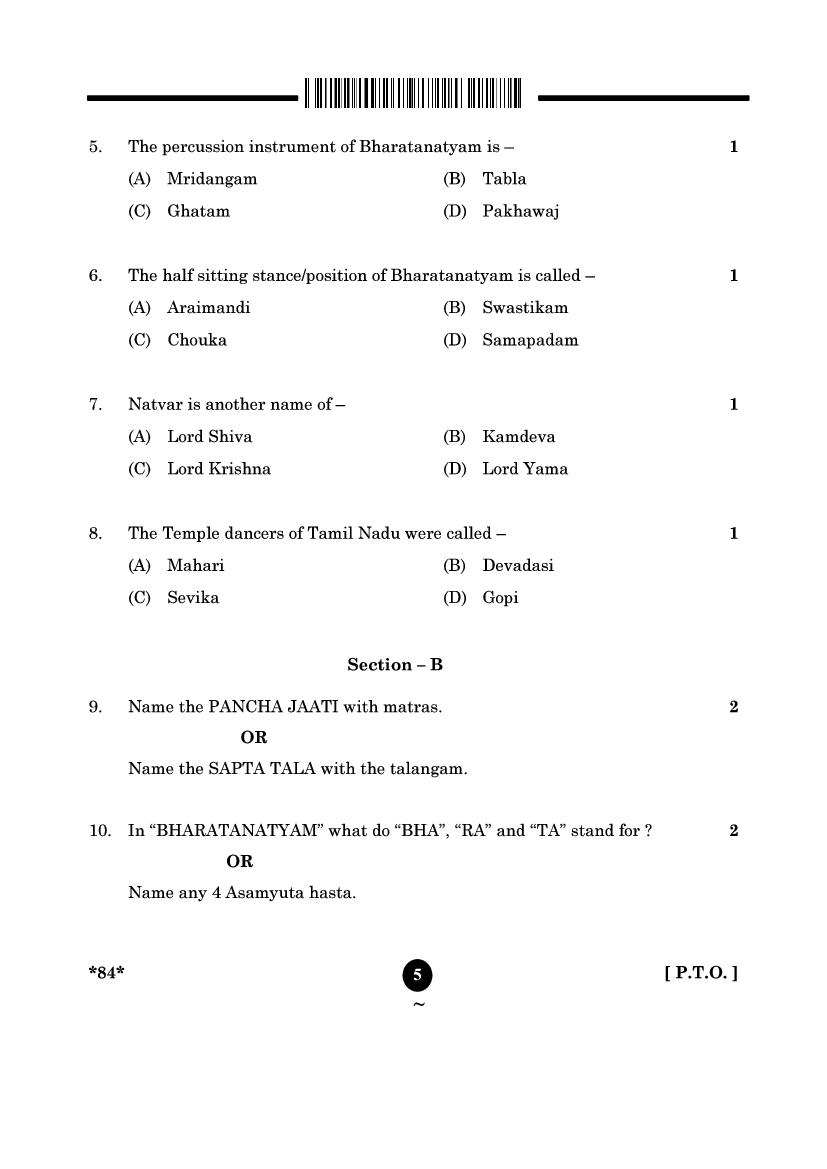 The CBSE question paper for class 12 Dance of the exam held in past years is as follows.
